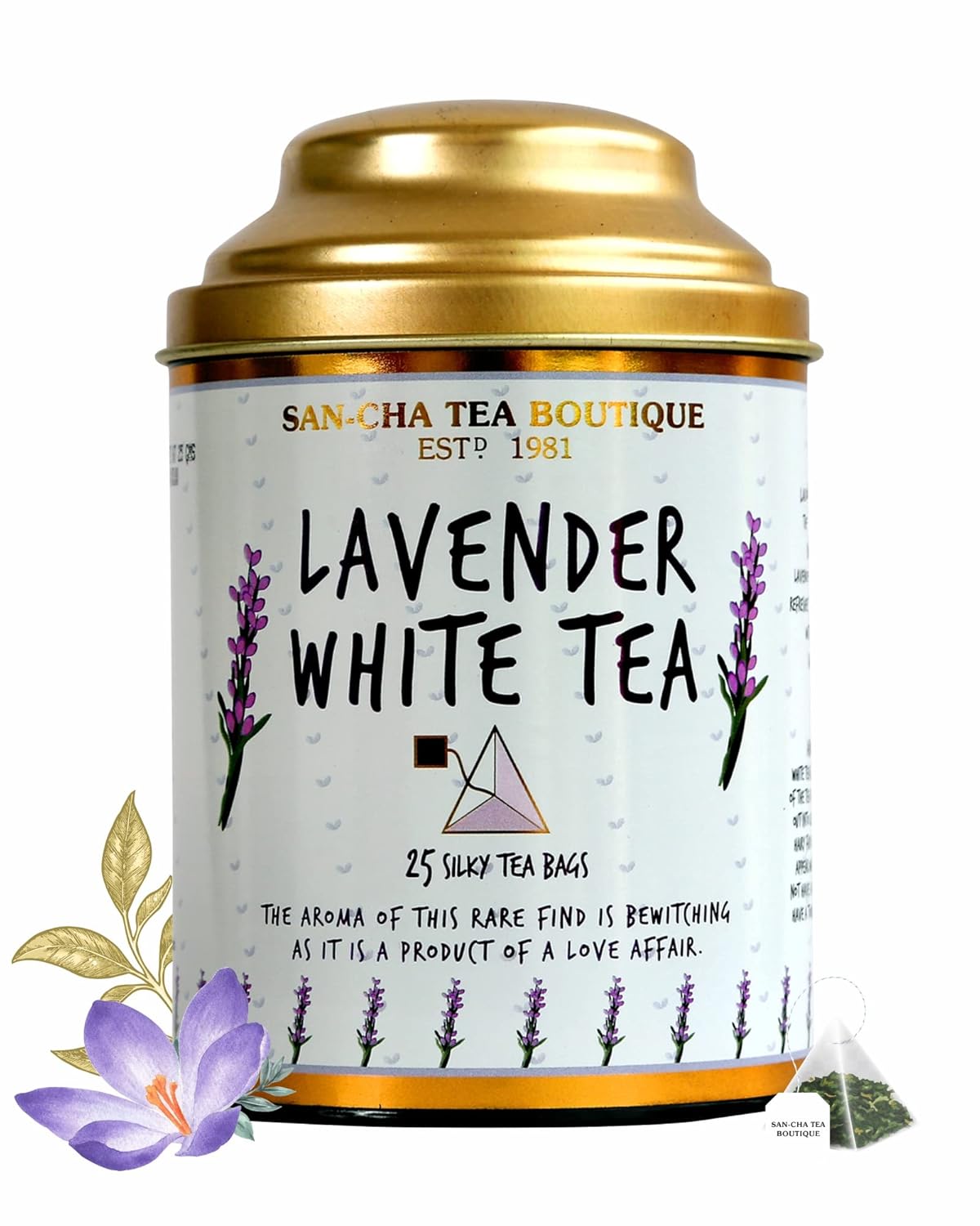 San-Cha Lavender White Tea - 25gm, 0.8 Ounce, 25 Silky Tea Bags | Calming & Relaxing Tea, Relieves Stress - Low Caffeine, Richest In Antioxidants