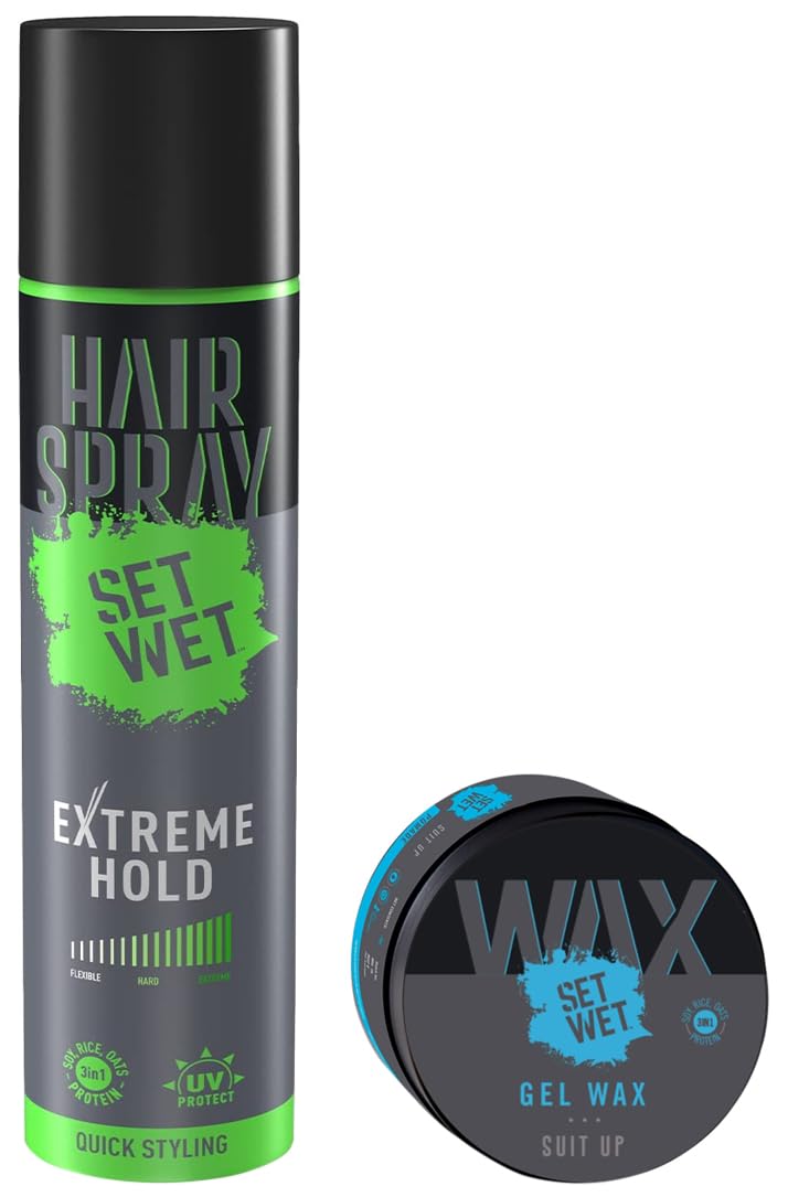 The Set Wet Hair Spray for men-Extreme Hold sets your hairstyle so that no strand is out of place. Just spray the Set Wet Extreme Hold Hair Spray and look sada sexy. This Set Wet Extreme Hold Hair Spray for men is non-sticky and sets your hair in place without weighing it down. When used after styling with gel, wax, clay or pomade, the Set Wet Extreme Hold Hair Spray gives an extra strong hold to maintain your hairstyle all day long. The Set Wet Extreme Hold Hair Spray contains only sexiness & no harmful chemicals that harm your hair. Free of all baddies like paraben, sulphate, mineral oil, petrolatum, formaldehyde, DEA, SLS, and SLES. Style your hair, then spray it on before you head out for a date, a chill Friday evening, a dinner date or even a dance party. It's all you need to keep your confidence high and sexy. This Set Wet Extreme Hold Hair Spray can be easily combed or washed off without the need of a shampoo and is ideal for men with straight, wavy or curly hair.