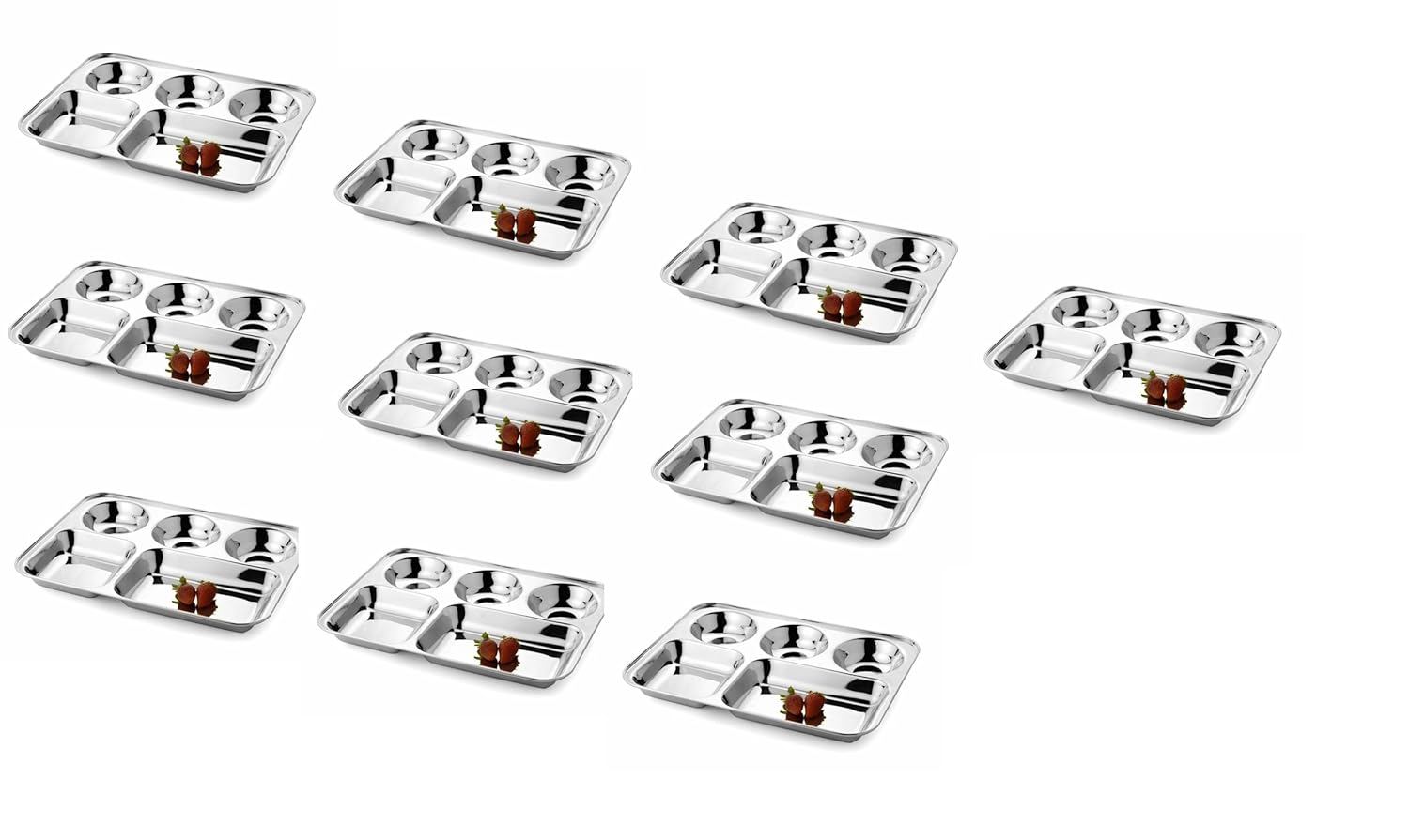 Silver Stainless Steel Sandwich Tray Set, 5 Pieces, Microwave Safe | Set Of 5 Individual Trays In 1 - Pack Of 10