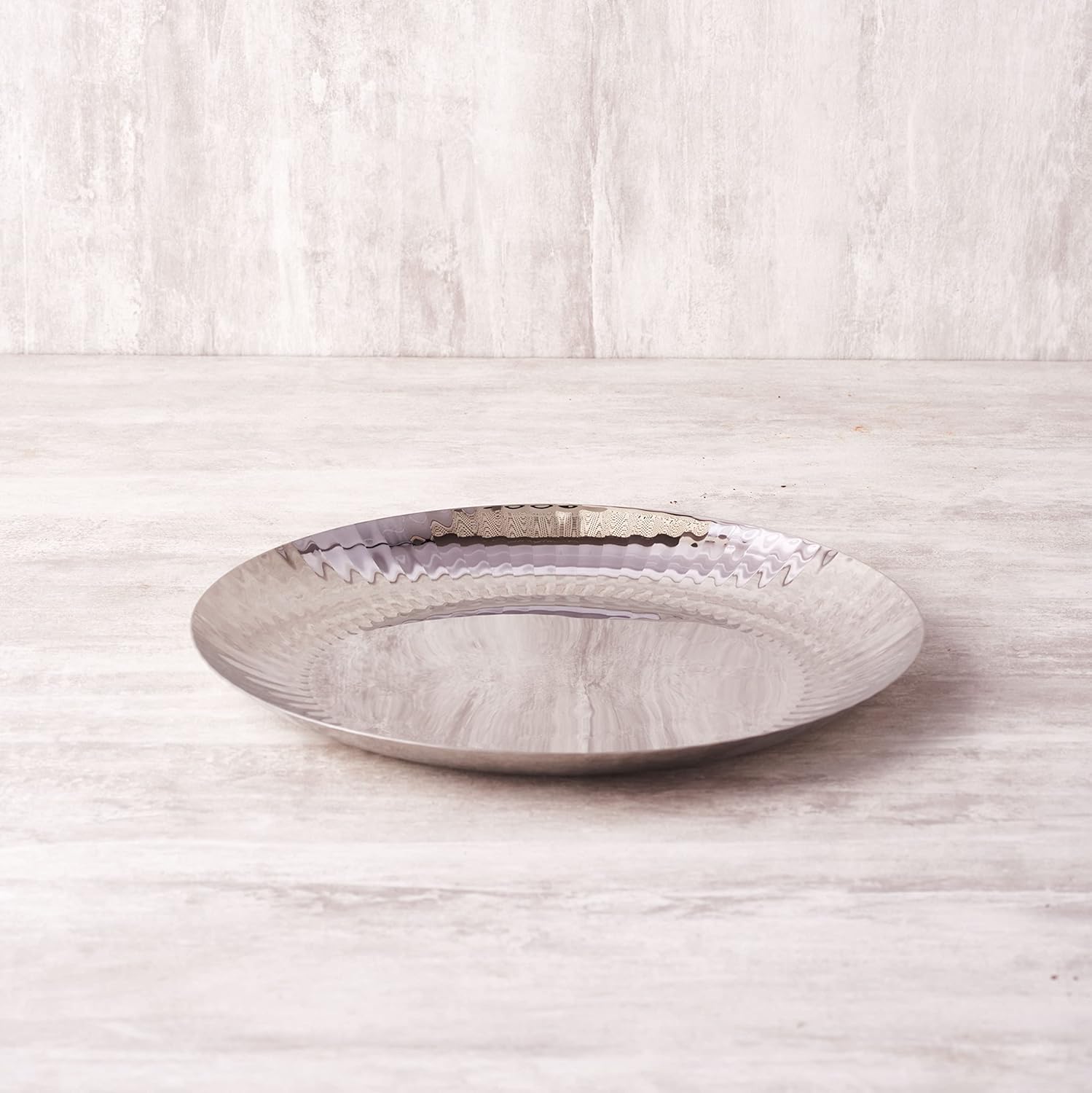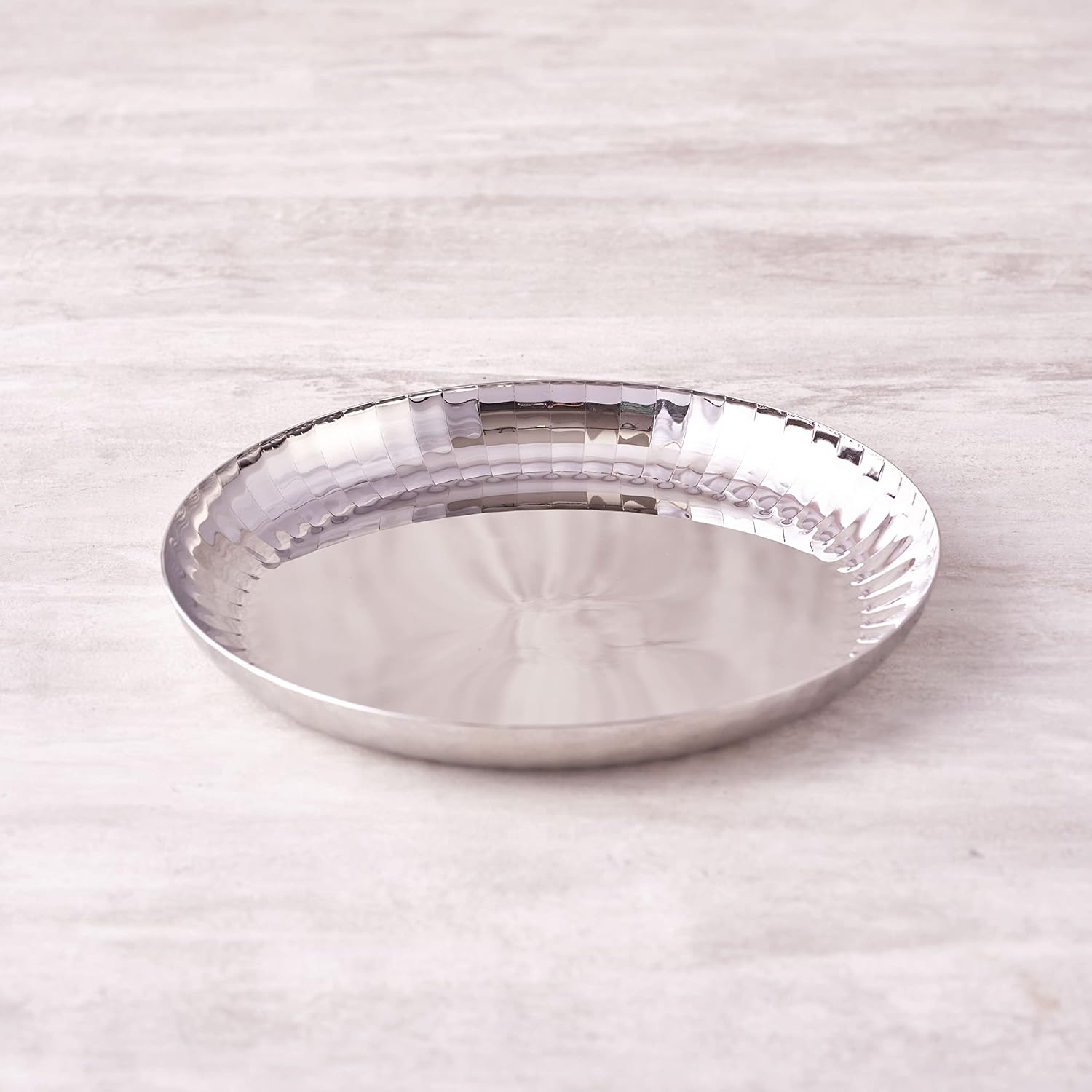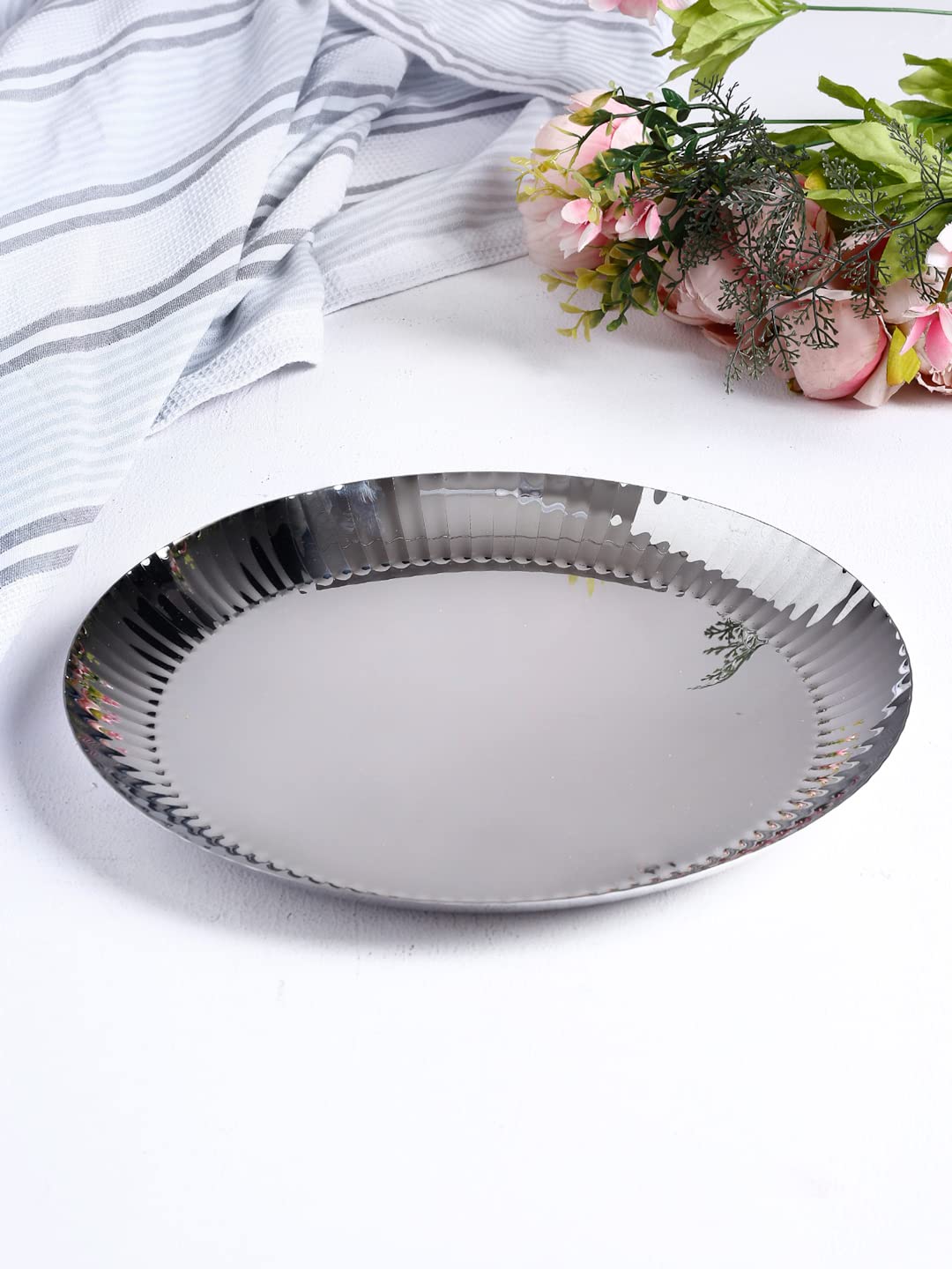Silver Stainless Steel Serving Platter | Ribbed Pattern Pattern | Multipurpose Serving Tray For Sweets, Cookies, Dry Fruits & Other Snacks | Serve Ware, Dinnerware & Tableware, Large | Rhythm Garden Series