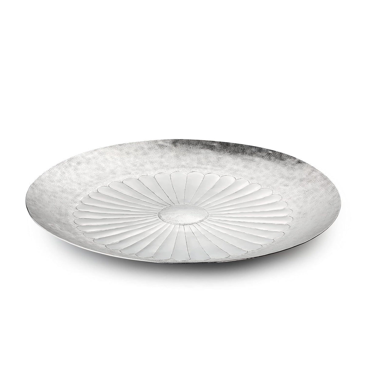 Silver Stainless Steel Serving Platter | Hammering Pattern | Multipurpose Serving Tray For Sweets, Cookies, Dry Fruits And Other Snacks | Serve Ware, Dinnerware & Tableware | Poppy Series