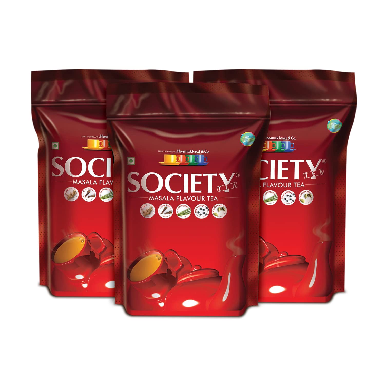 Society Masala Flavor Tea Pack Of 3 X 500gm, 17.6 Ounce Each - Masala Chai Enriched With Cardamom Ginger Cloves Black Pepper & Lemongrass | Refreshing Classic Masala Tea - No Preservatives