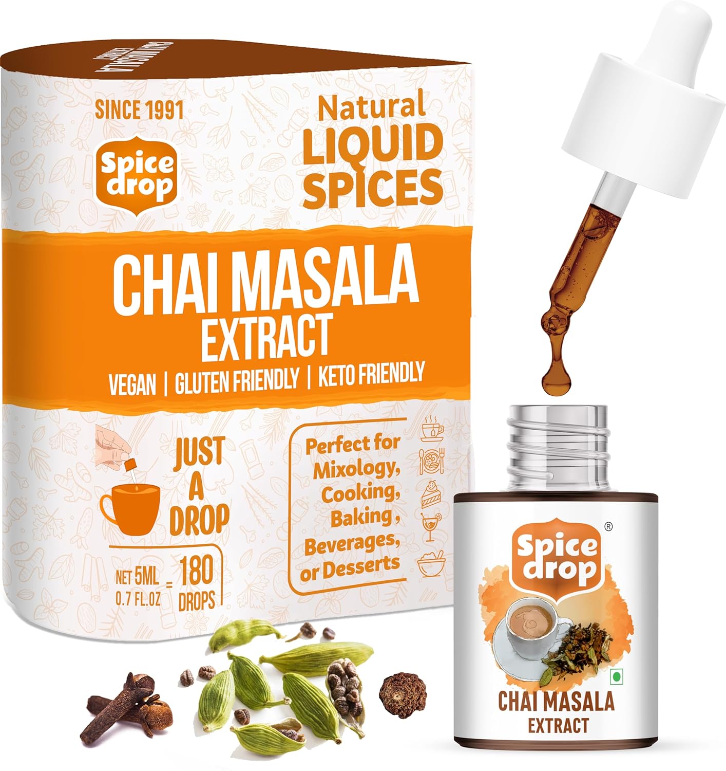 WHY SPICE DROP: 1 bottle of Spice Drop Chai masala is equivalent to 4.5 ounces (125 grams) of Chai Spice powder. This not only makes it economical but also saves storage space. The long shelf life ensures no loss of flavor, unlike spice powders. And no messy kitchen counters!