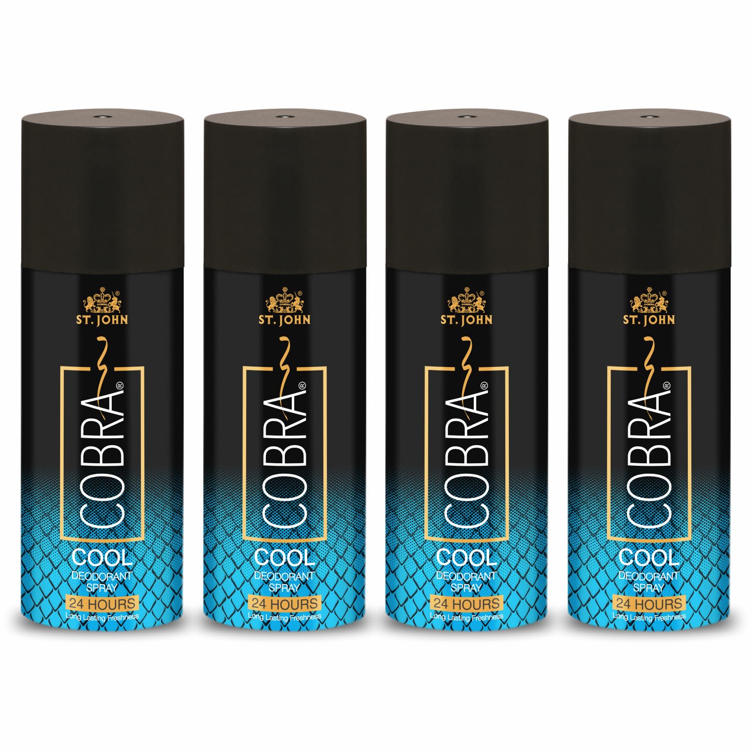 St. john Cobra Cool Deodorant Body Spray 600ml 20.2 Fl.oz. Pack Of 4 | Perfect Gift Set For Husband & Wife | Long Lasting Fragrance