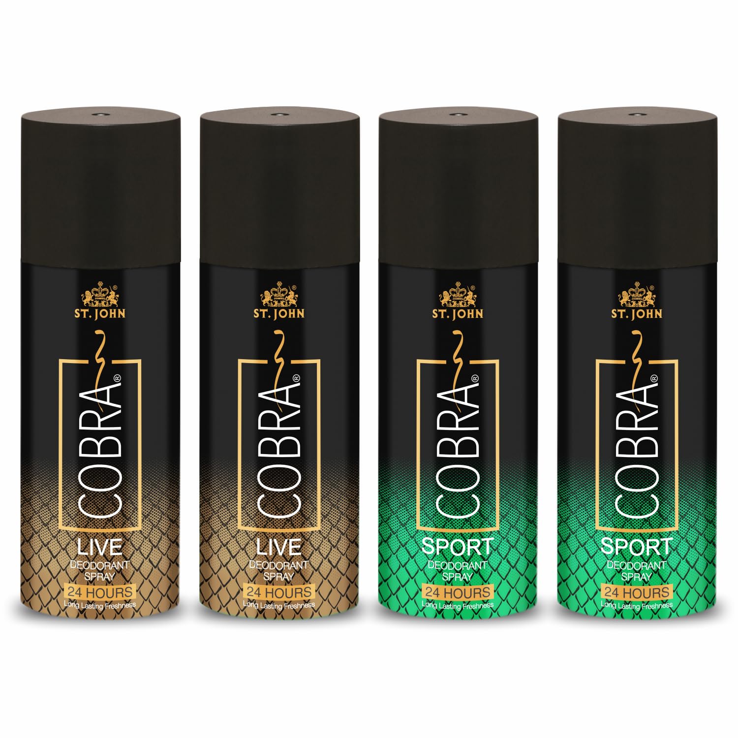 St. John Cobra Live + Live + Sports + Sports Deodorants Body Spray 600ml 20.2 Fl.oz. Pack Of 4 | Perfect Dailywear Perfume For Unisex