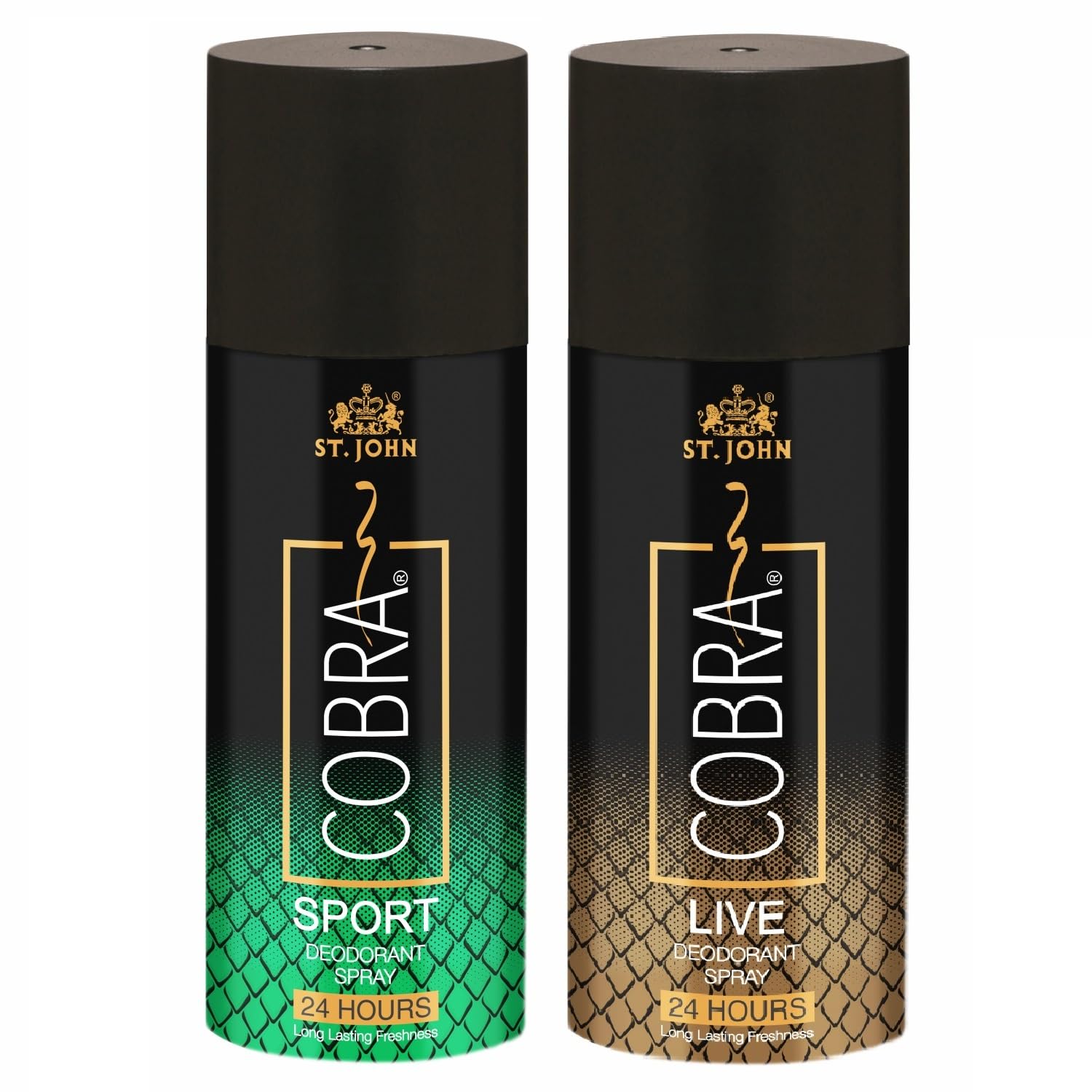 St. john Cobra Live & Sport Deodorant Spray 300ml 10.1 Fl.oz. Pack Of 2 | Perfect Gift Set For Husband | Long Lasting Fragrance