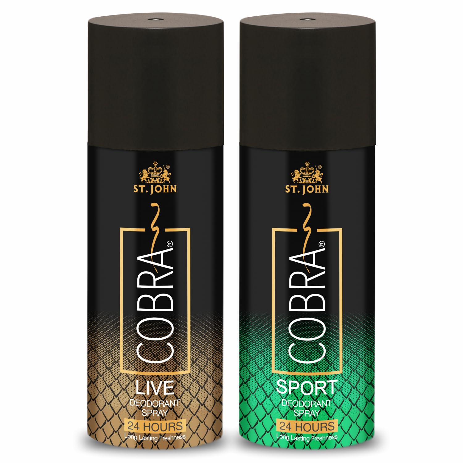 St. John Cobra Long Lasting Live & Sports Deodorant Spray 300ml 10.1 Fl.oz. Pack Of 2 | Perfect Gift For Husband