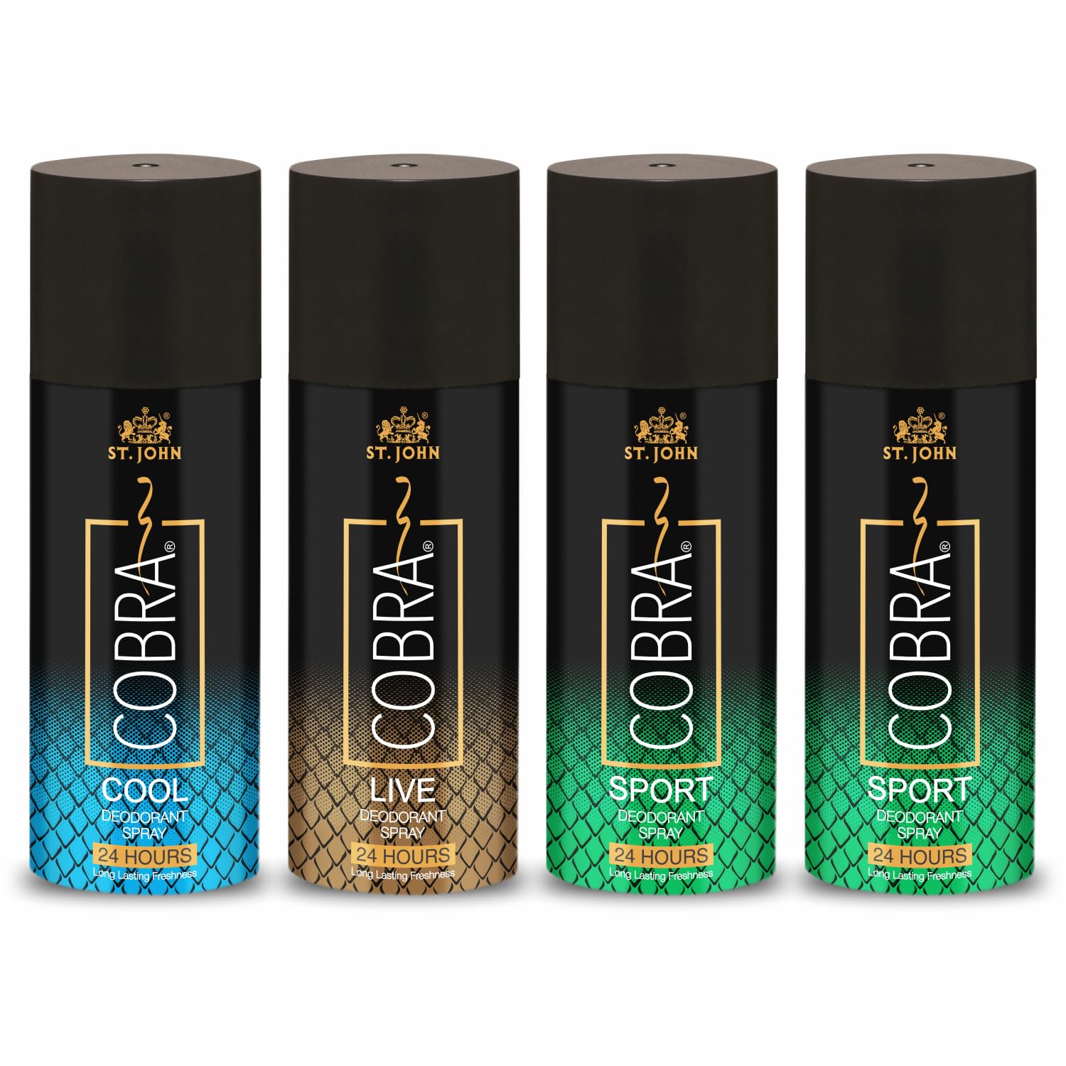 St. john Cobra Sports , Sports ,cool & Live Deodorants Body Spray 600ml 20.2 Fl.oz. Pack Of 4 | For Unisex Perfect For Dailywear Perfume