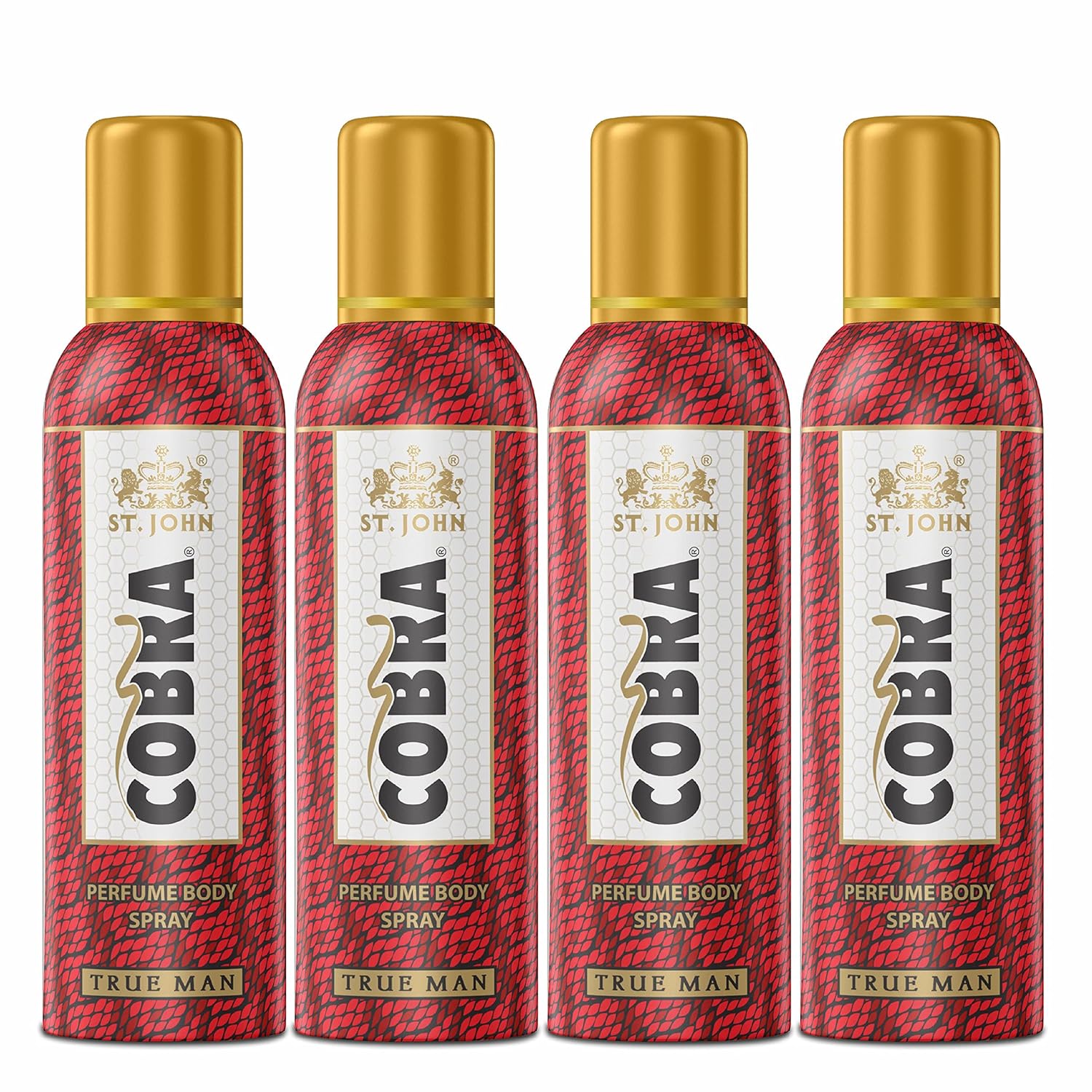 St. John Cobra True Man Perfume Men Body Spray 400ml 13.5 Fl.oz. Pack Of 4 | Perfect For Suited All Season Perfume