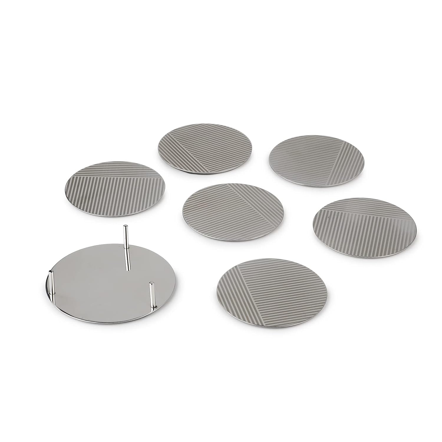 Stainless Steel Designer Round Coaster Pack Of 6, Chrome | Corporate Gifting For Diwali | Drink Glass Holder For Home, Counters Kitchen | Geometric Patterns | Serve Ware, Dinnerware & Tableware | Deco Series