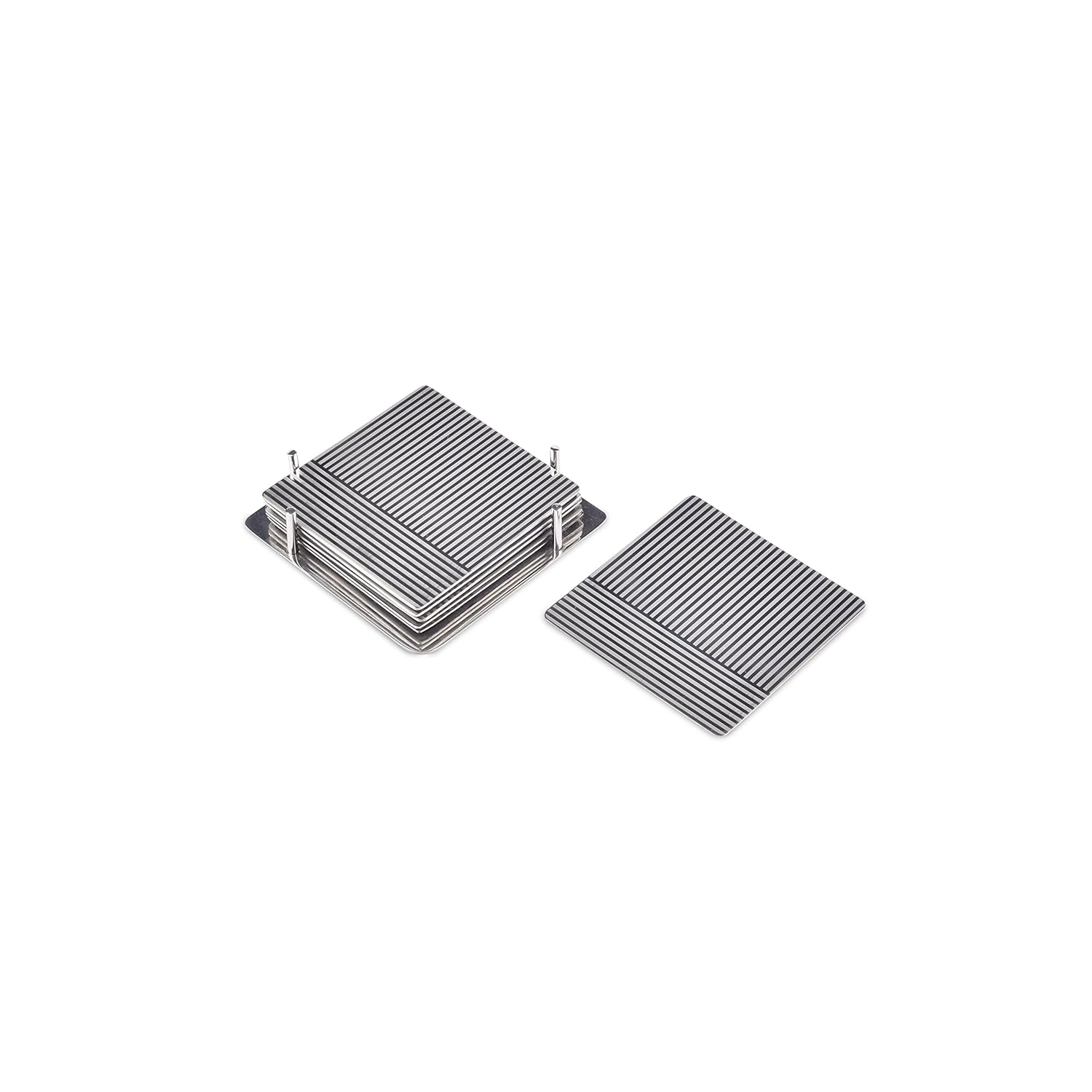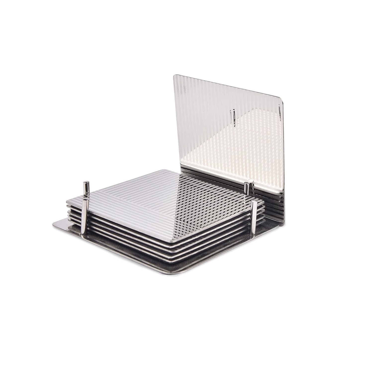 Stainless Steel Designer Square Coaster Pack Of 6, Chrome | Corporate Gifting For Diwali | Drink Glass Holder For Home, Counters Kitchen | Geometric Patterns | Serve Ware, Dinnerware & Tableware | Deco Series