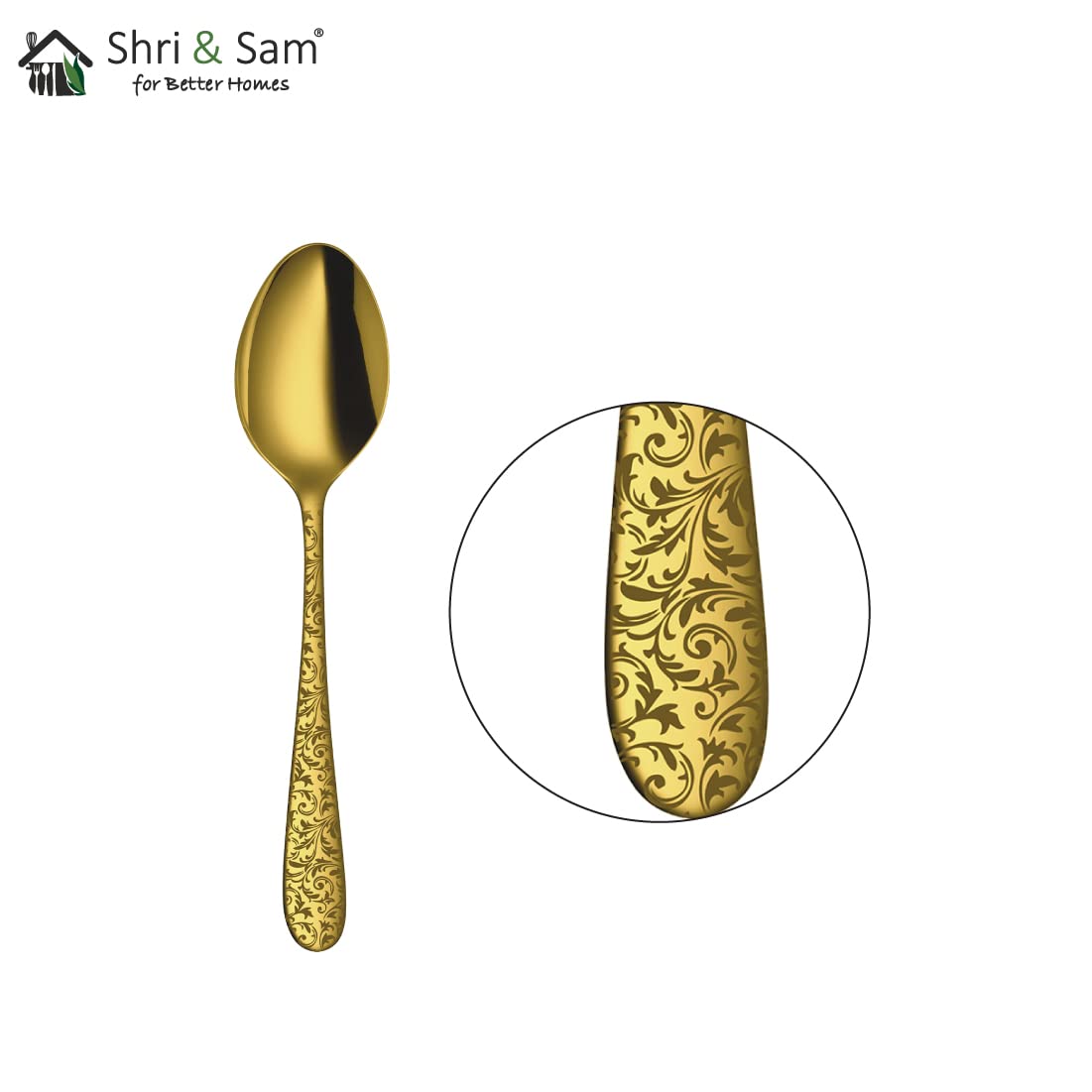 Stainless Steel Jasmine With Gold PVD Coating & Laser Baby Spoon Set Of 6 Pieces | Dishwasher Safe