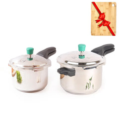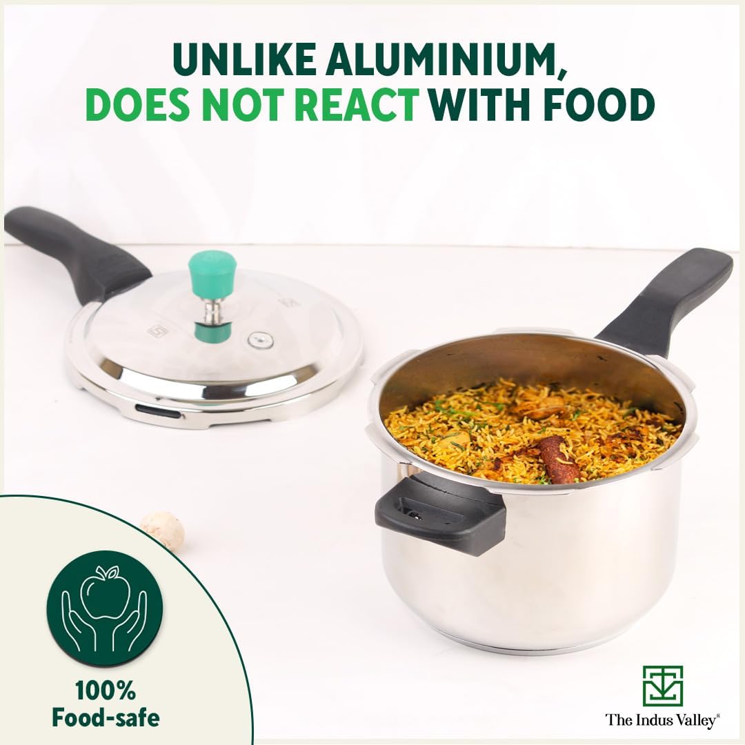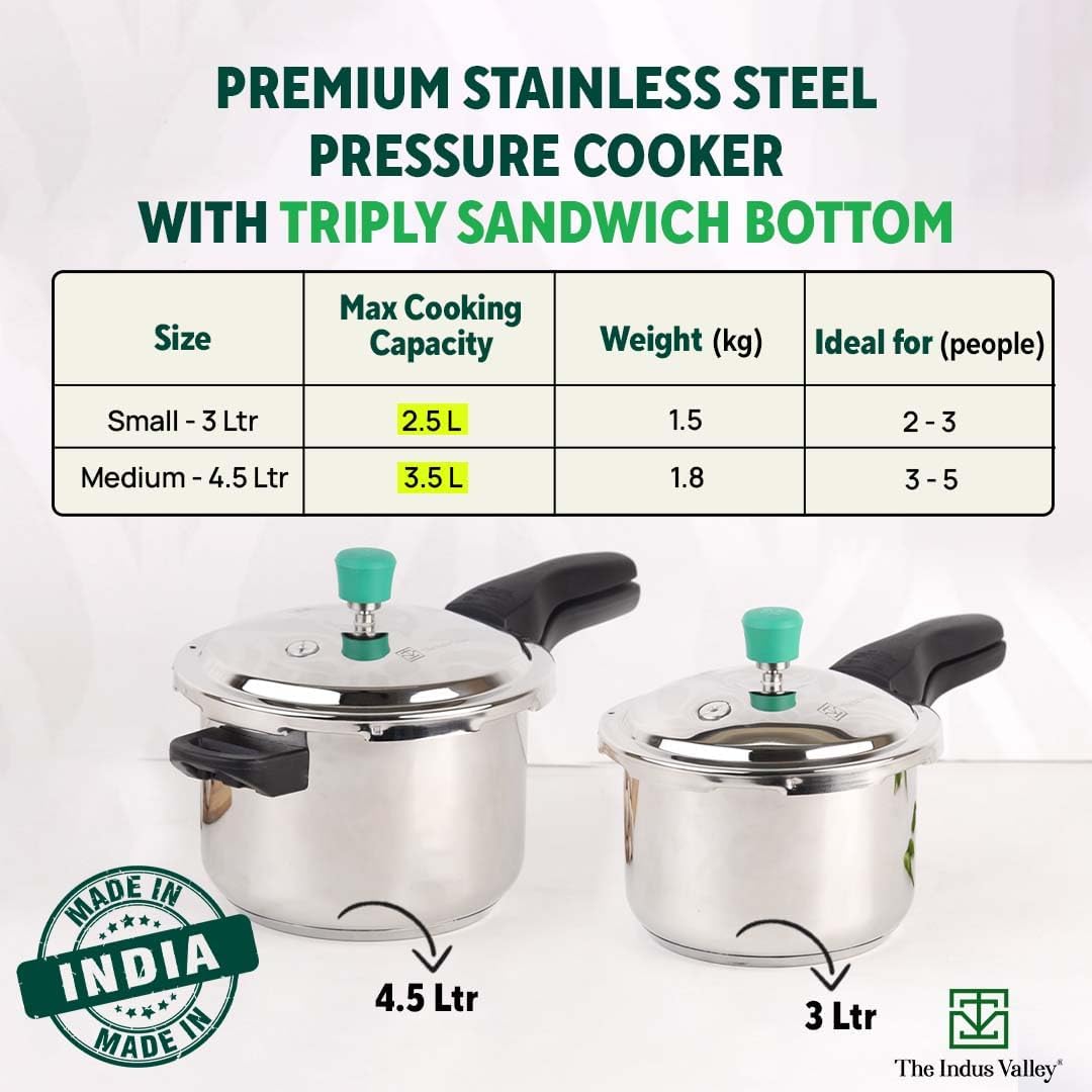 Stainless Steel Pressure Cooker Outer Lid Combo + Free Wooden Chopping Board | 3 Ltr + 4.5 Ltr | Induction Friendly | Tri-ply Sandwich Bottom | 100% Toxin-free, Naturally Non-stick