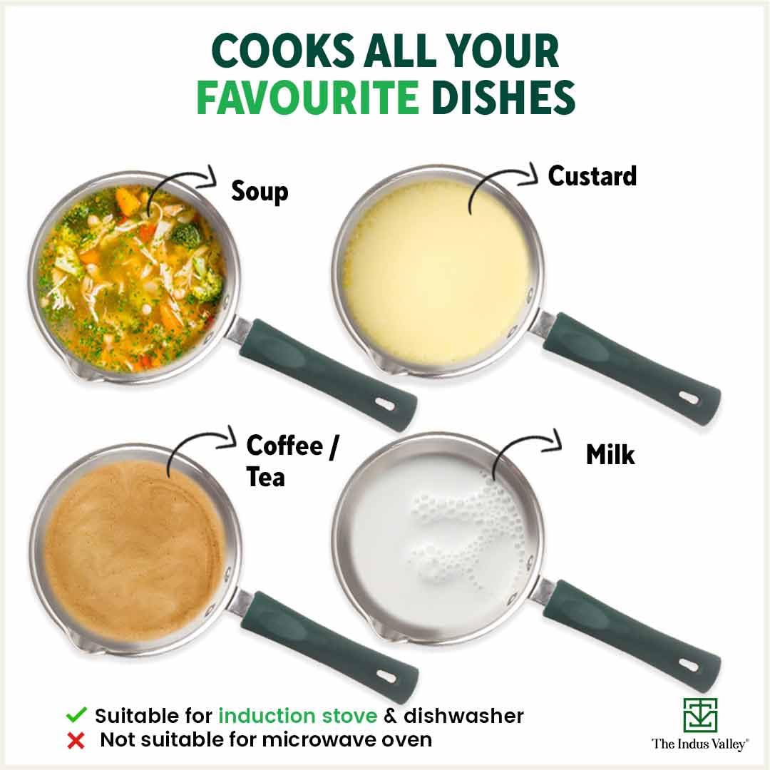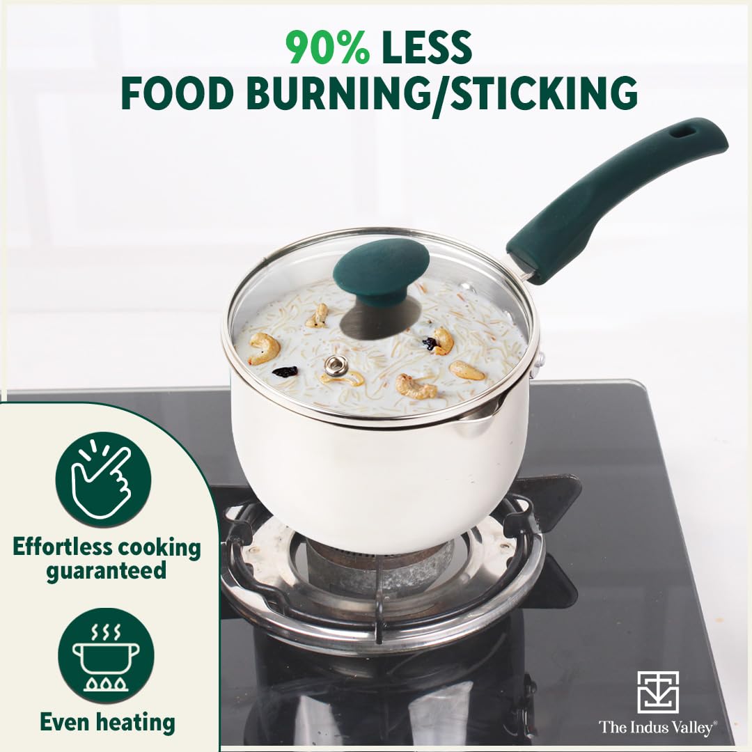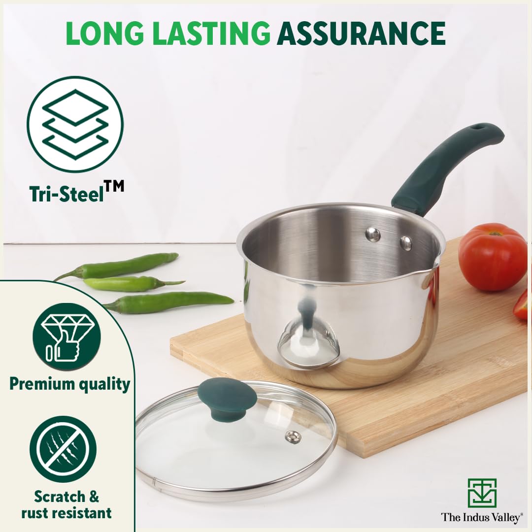 Stainless Steel Sauce Pan Or Milk Pan With Glass Lid | Very Small, 15.1cm, 5.9 Inch, 1 Liter, 0.8 Kg | Induction Friendly | 3-layer Bottom, 100% Toxin-free, Naturally Non-stick, Long Lasting