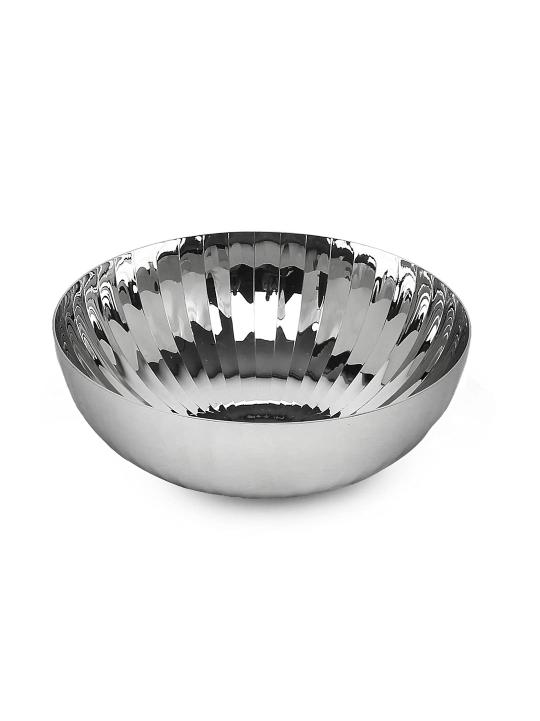 Elegant Stainless Steel Serving Bowl: Presenting the Stainless Steel Serving Bowl from the Rhythm Garden Series by Jindal. This large dining table bowl with a ribbed pattern adds a touch of sophistication to your serveware, dinnerware, and tableware collection.