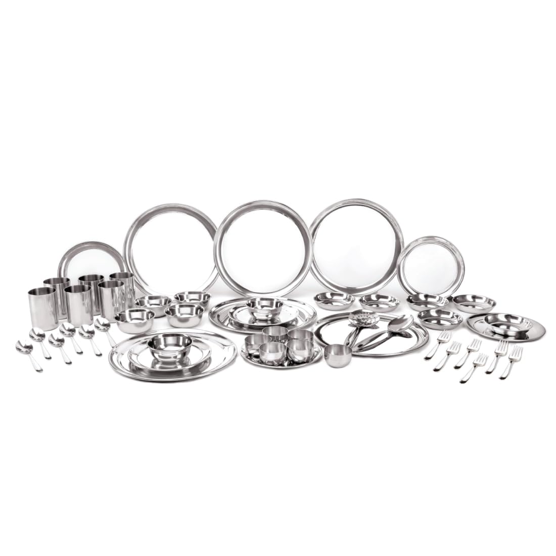 Stainless Steel Shagun Solid Dinner Set Of 50 Pcs, Silver | Ideal For 6 People - Dishwasher Safe