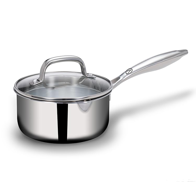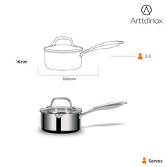 Stellar Stainless Steel Triply Saucepan With Glass Lid | 16 Cm, 1.5 Liters | Rivet Less Handle | Gas & Induction Base