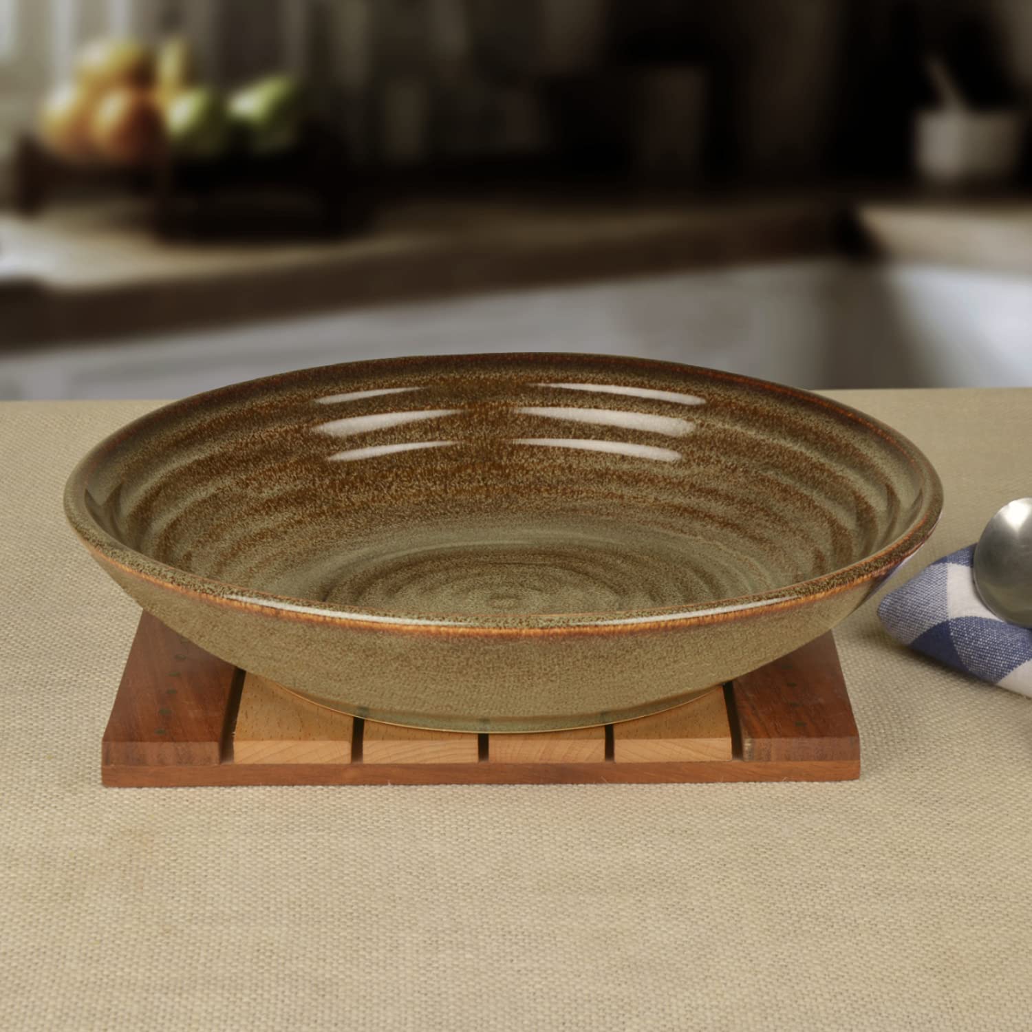 Studio Pottery Ceramic Shallow Serving Bowl - Brown, Diameter - 24 Cm, 800ml | Salad Bowl | Pasta Serving Bowl | Snack Bowl - Brown Symphony Collection