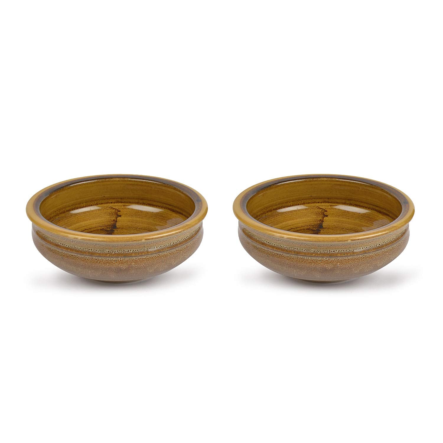 Studio Pottery Ceramic Snack Serving Bowls Set Of 2 - 400ml Each, Mustard Yellow | Decorative Bowls For Kitchen