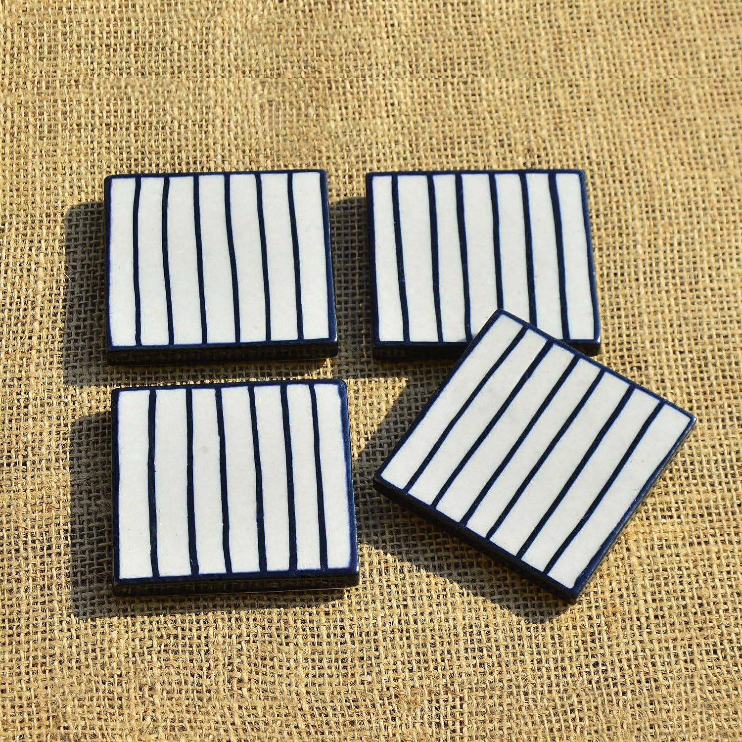 Studio Pottery Ceramic Tea & Coffee Square Coasters Set Of 4 - White & Black | Dining Table Coasters | Bar Accessories