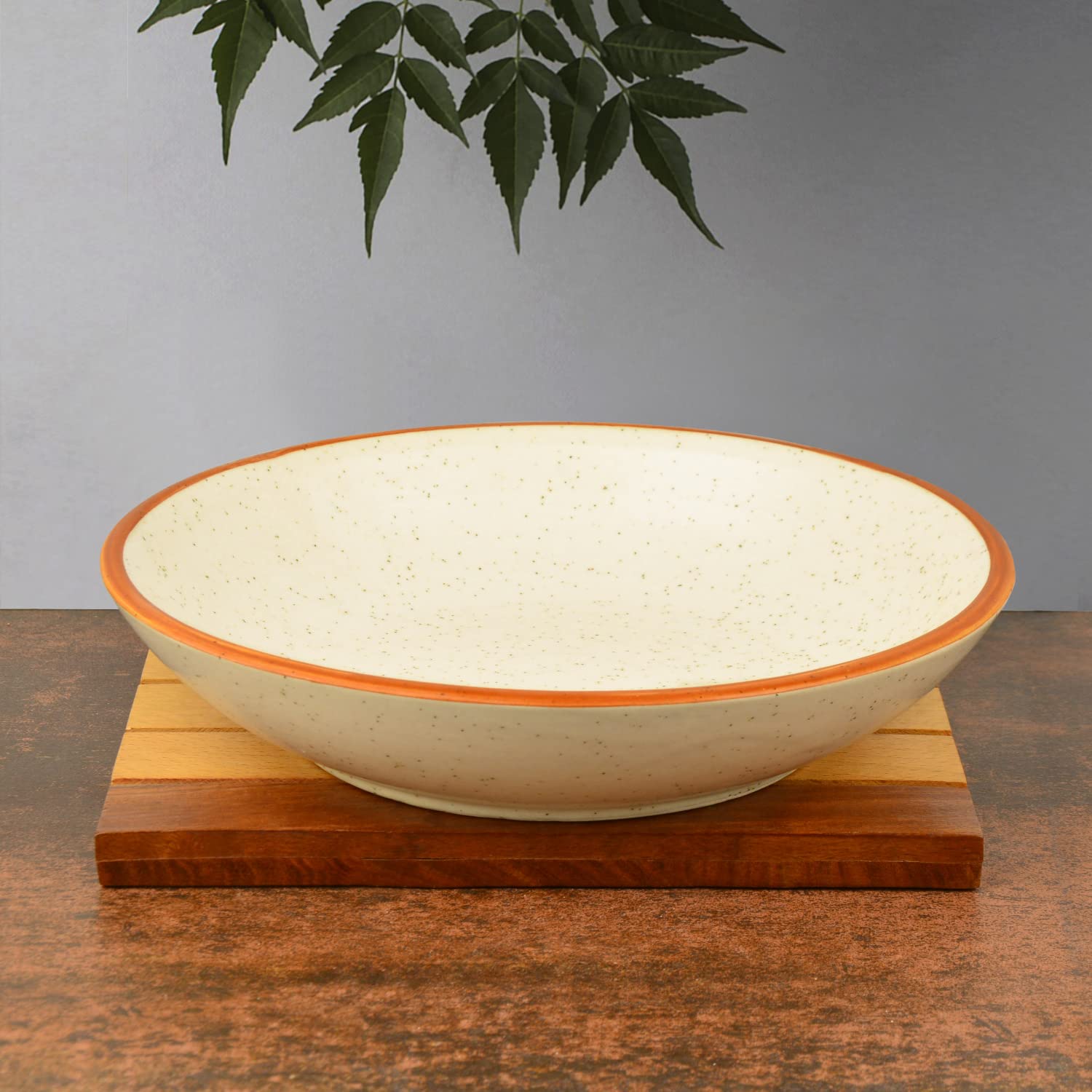 Studio Pottery Matt Finish Ceramic Serving Bowl - Off White & Brown, Diameter – 21 Cm, 500ml | Rice & Salad Bowl | Snack Bowl | Vegetable & Pasta Serving Bowl