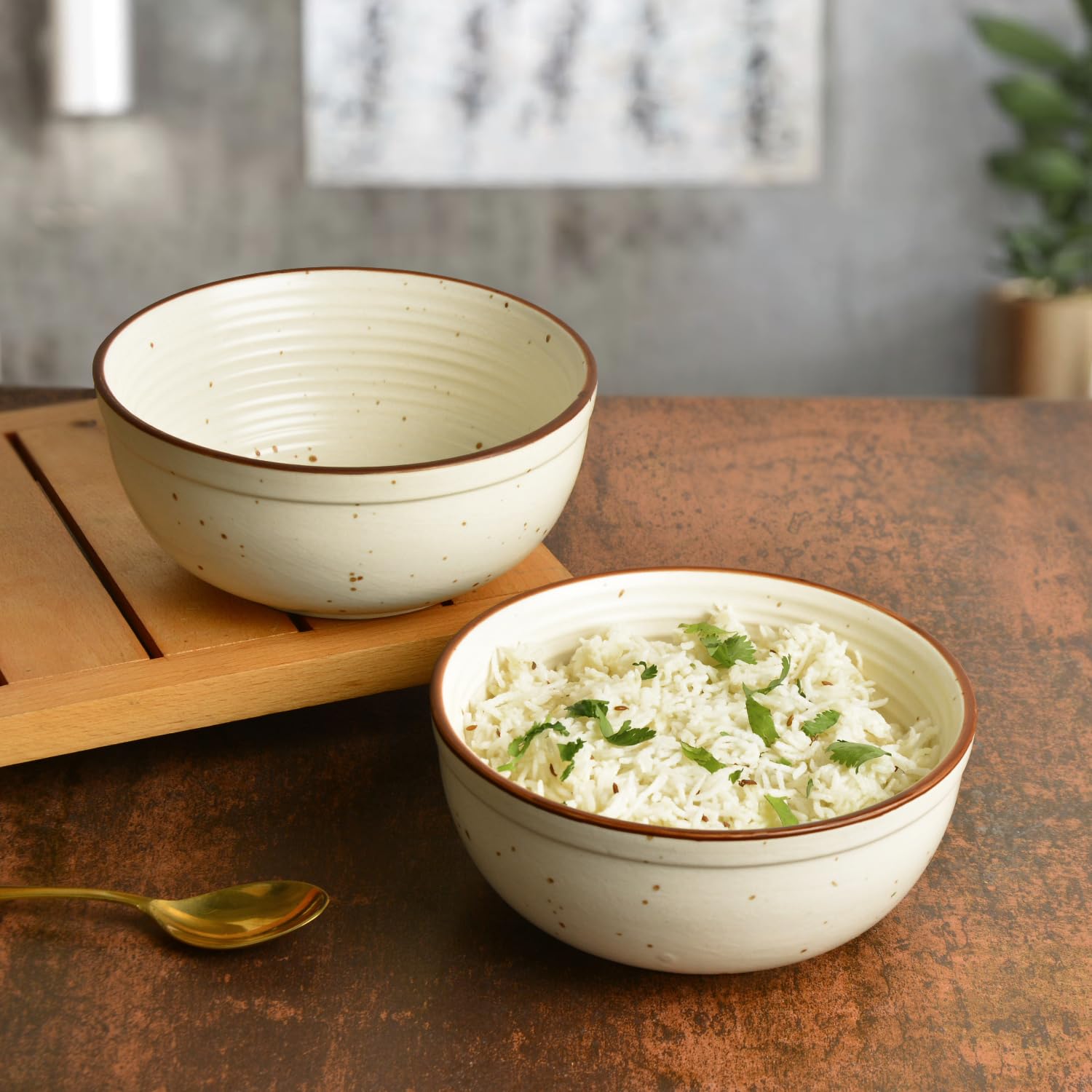 Studio Pottery Off White Matt Finish Ceramic Dinner Serving Bowls Set Of 2 | Diameter - 6.6 Inches, 850ml Each | Rice & Salad Bowls | Snack Bowls | Vegetable & Pasta Serving Bowls