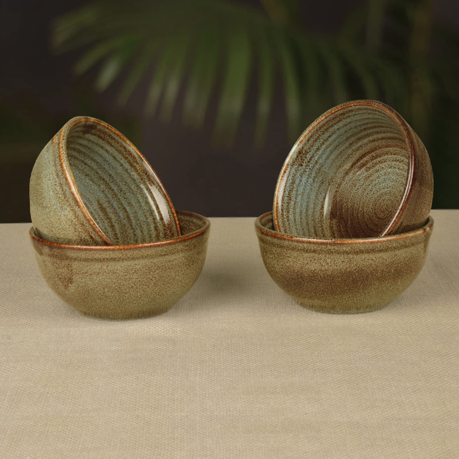 PACKAGE CONTENTS : 4 Stoneware Bowls ; DIMENSIONS : Diameter – 10.5 cm , Height – 5 cm , Weight – 200 gm each; Volume – 300 ml each