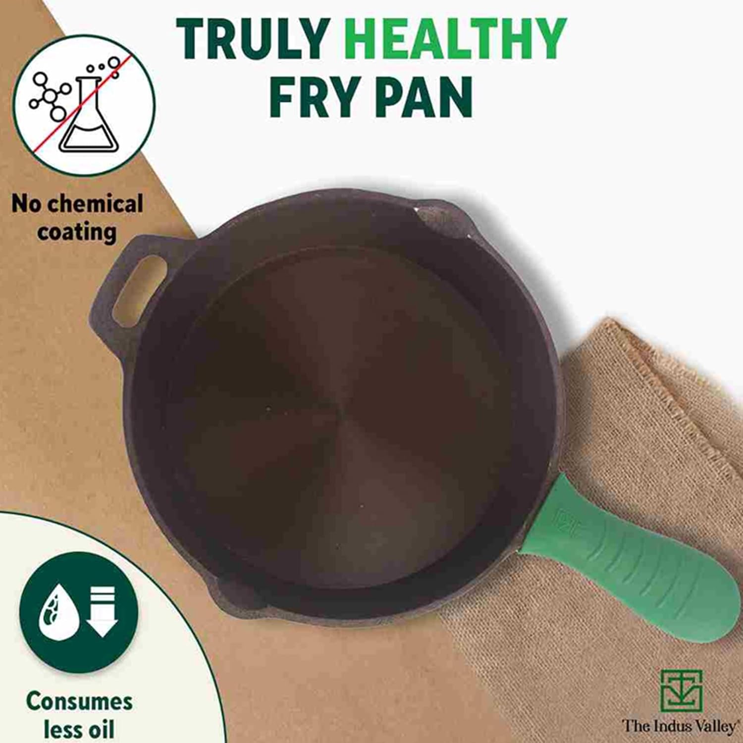 Super Smooth Cast Iron Fry Pan Or Skillet With Silicone Grip | Small 20.3cm, 8 Inch, 1.3 Liters, 2.3 Kg | Induction Friendly | Nonstick, Pre-seasoned Fry Pan, 100% Pure & Toxin Free, Black