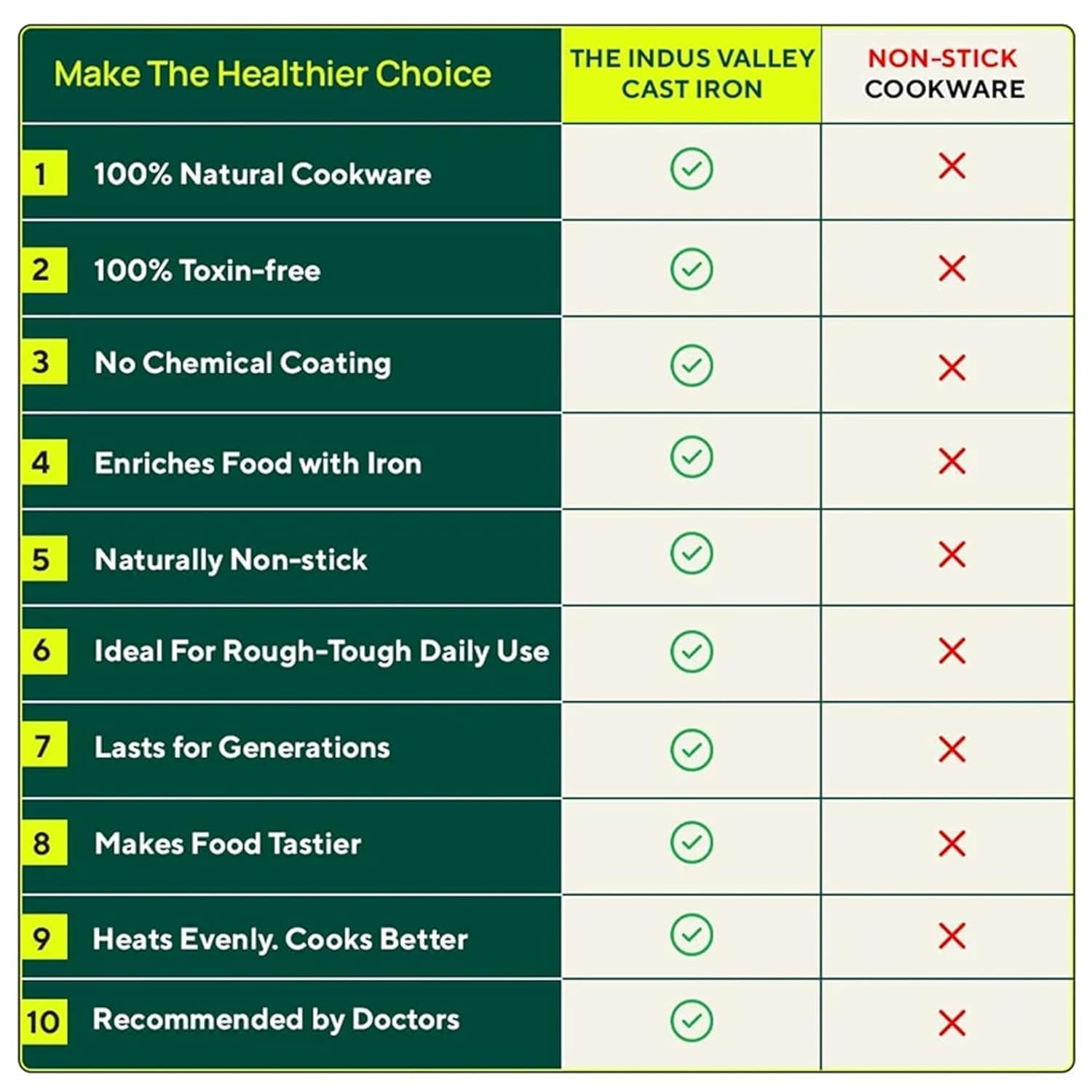 Toxin free cookware: Made from 100% Natural cast iron cookware, this cast iron Tawa is a 100% Healthy cookware, food safe without chemicals, coatings or toxins