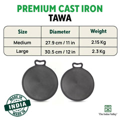 This pack contains: Cast iron tawa. Convenient handle for easy holding