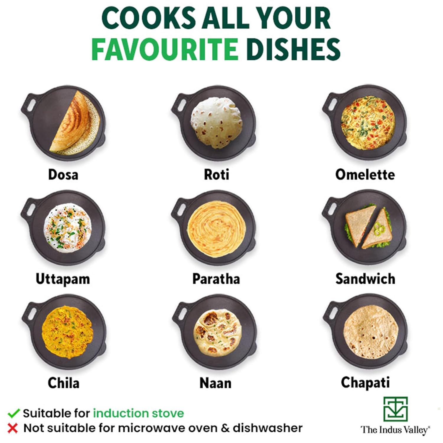 Toxin free cookware: Made from 100% Natural cast iron cookware, this cast iron Tawa is a 100% Healthy cookware, food safe without chemicals, coatings or toxins