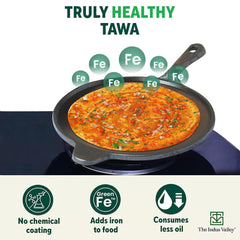 HEALTHY - Cast iron Tawa are the best when compared to other chemical coated non-stick Tawa's. They add iron to the food that makes food even healthier.
