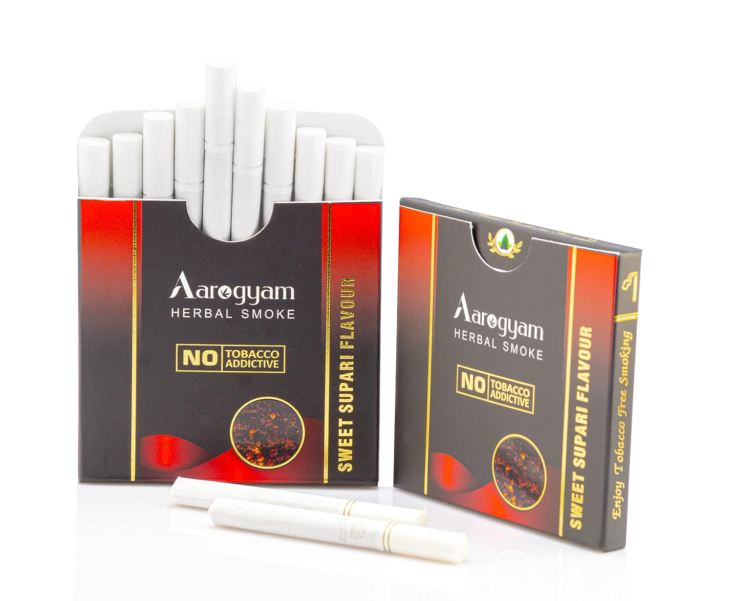 Aarogyam Herbal cigarette contains 100% tobacco free and nicotine free ingredients like : Indian Blue Water Lily, Indian White Water Lily, Swarnadhanya, Chamomile, Licorice, Clove, Pudina and some other rare and valuable Herbs which are best for Smoking cessation.