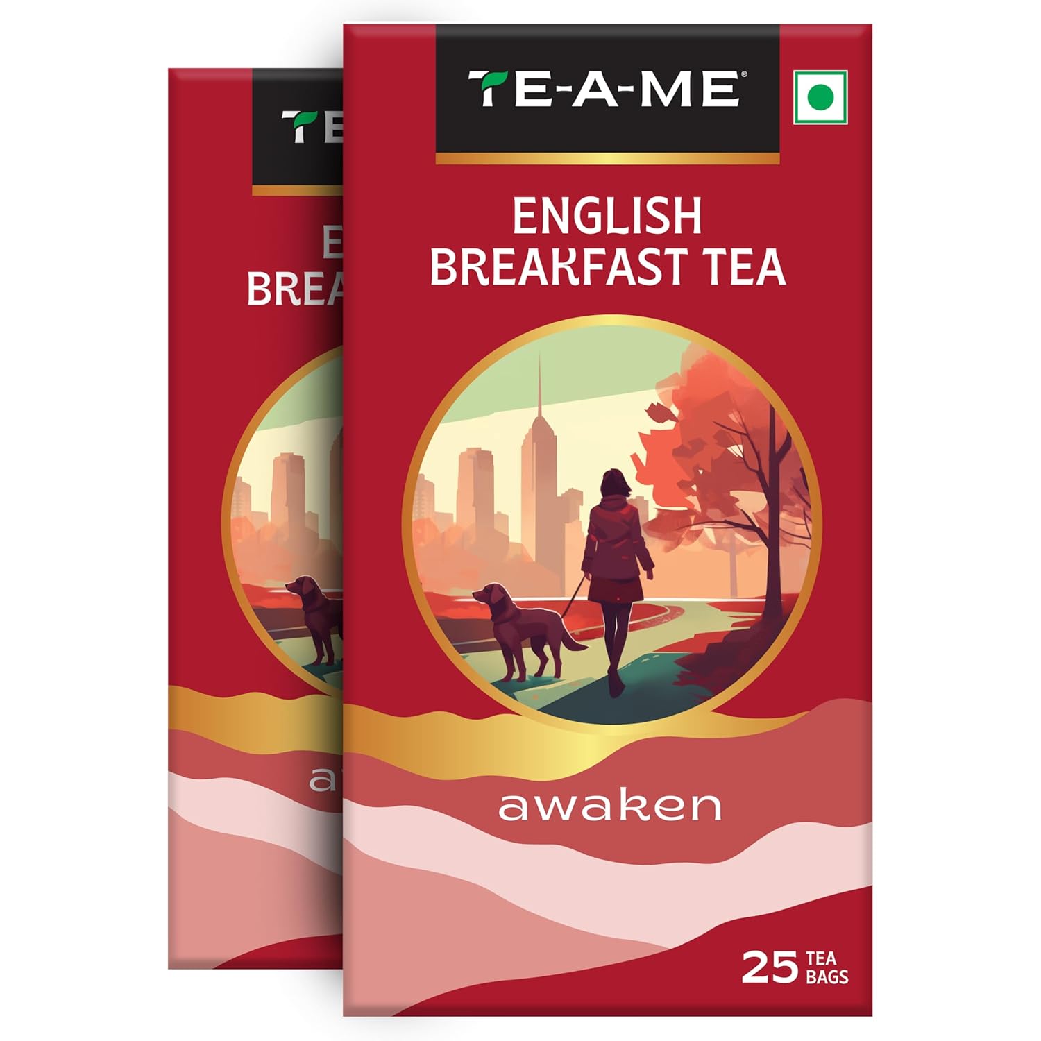 TE-A-ME Awaken English Breakfast Tea - Pack Of 2 X 25 Tea Bags | Full-Bodied & Rich Taste - Smooth & Robust Flavor | Contains Caffeine - Packaging Might Vary