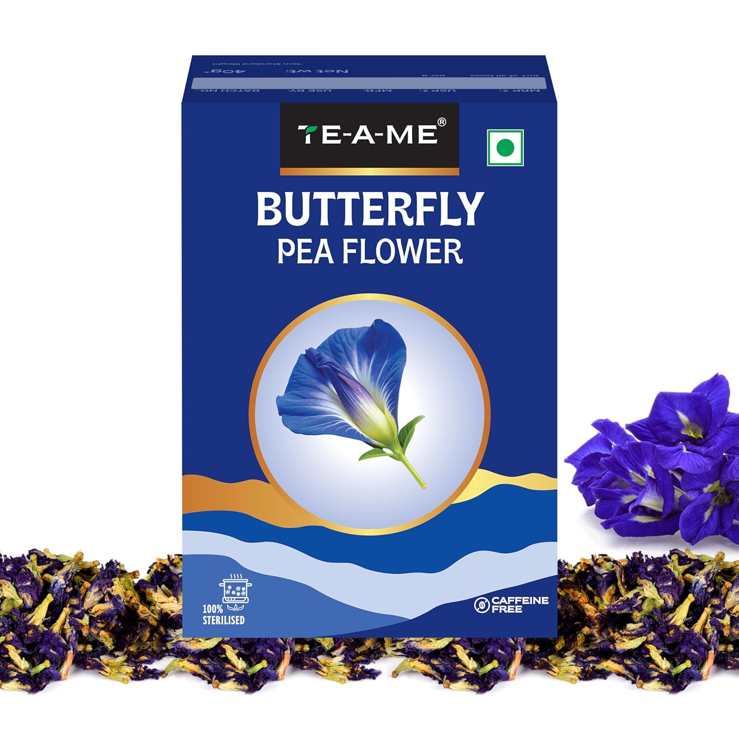 TE-A-ME Butterfly Pea Flower Tea - 40gm, 1.4 Ounce | Ayurvedic Shankhpushpi Flower - Helps Relieve Stress | Caffeine Free, Biodegradable