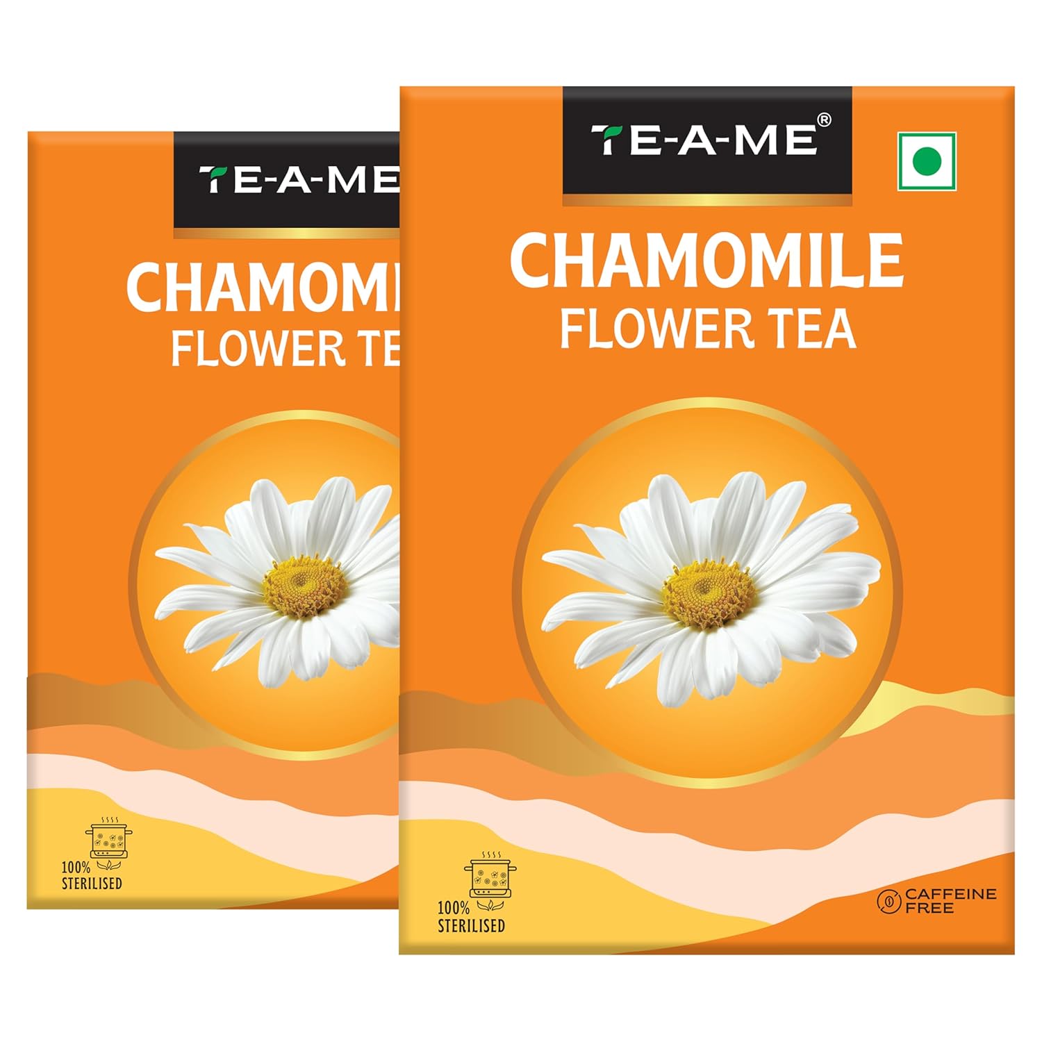 TE-A-ME Chamomile Flower Tea - Pack Of 2 X 50gm, 1.7 Ounce Each | Chamomile Tea For Good Sleep - Caffeine Free, Biodegradable