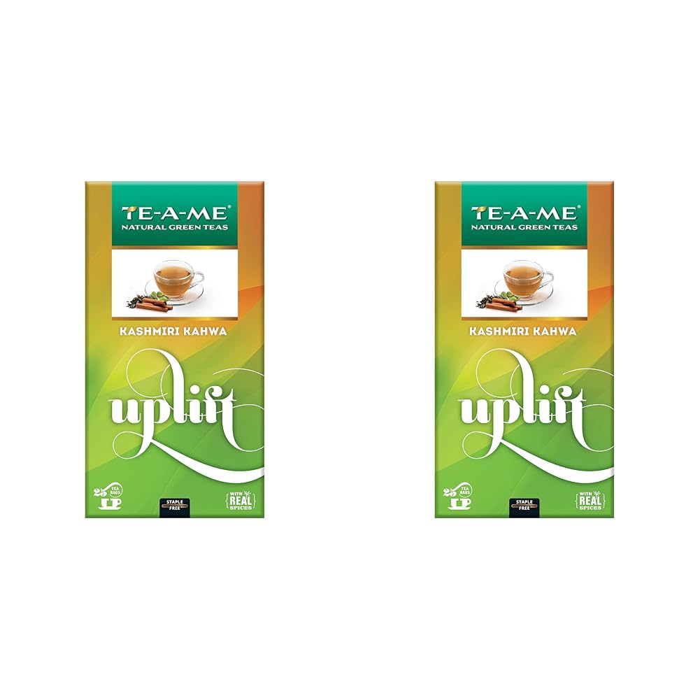 TE-A-ME Kashmiri Uplift Kahwa Green Tea - Pack Of 2 X 25 Tea Bags | Infused With Cinnamon, Cardamom & Green Tea - Contains Caffeine, Packaging Might Vary