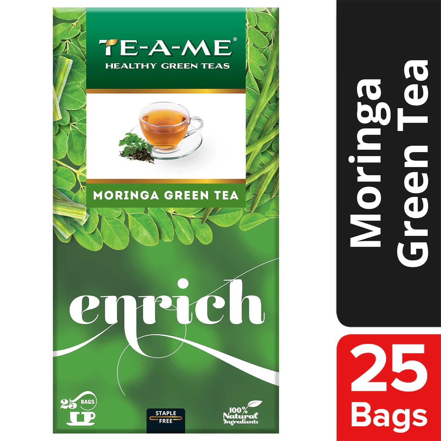 TE-A-ME Moringa Enrich Green Tea - 25 Tea Bags | Promotes Glowing Skin - Enriched With Turmeric, Ginger, Triphala & Amla