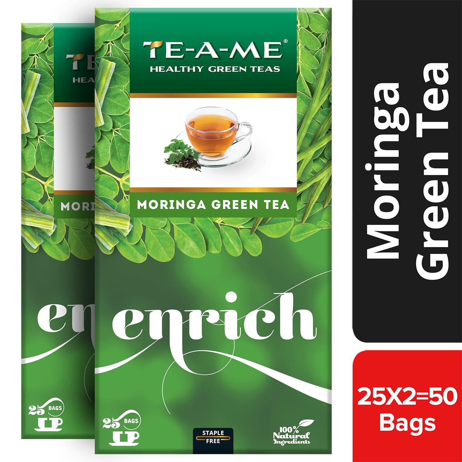 TE-A-ME Moringa Enrich Green Tea - Pack Of 2 X 25 Tea Bags | Promotes Glowing Skin - Enriched With Turmeric, Ginger, Triphala & Amla