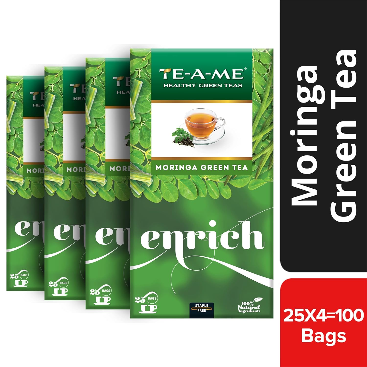 TE-A-ME Moringa Enrich Green Tea - Pack Of 4 X 25 Tea Bags | Promotes Glowing Skin - Enriched With Turmeric, Ginger, Triphala & Amla