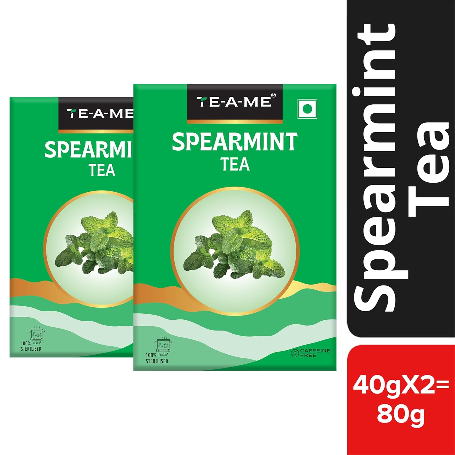 TE-A-ME Spearmint Tea - Pack Of 2 X 40gm, 1.4 Ounce Each | Spearmint Leaves Tea For PCOS, PCOD & Facial Hair Management - Caffeine Free, Biodegradable