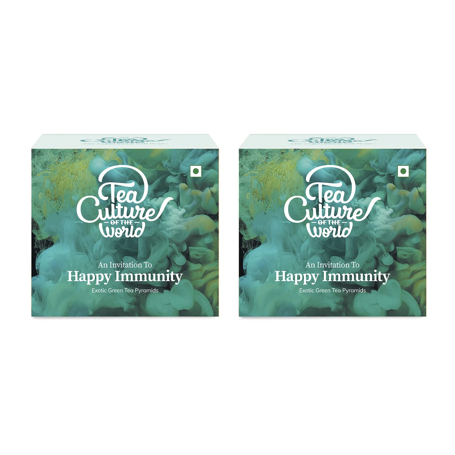 Tea Culture Of The World Happy Immunity Green Tea - Pack Of 2 X 16 Tea Bags | Ayurvedic Herbal Tea With Green Tea, Liquorice, Turmeric - Immunity Booster, Medium Caffeine
