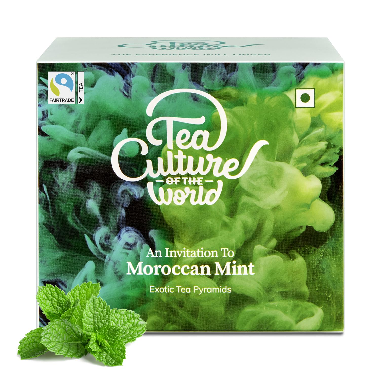 Tea Culture Of The World Moroccan Mint Green Tea - 16 Tea Bags | Promotes Healthy Skin - Premium First Quality Green Teabags | High Caffeine