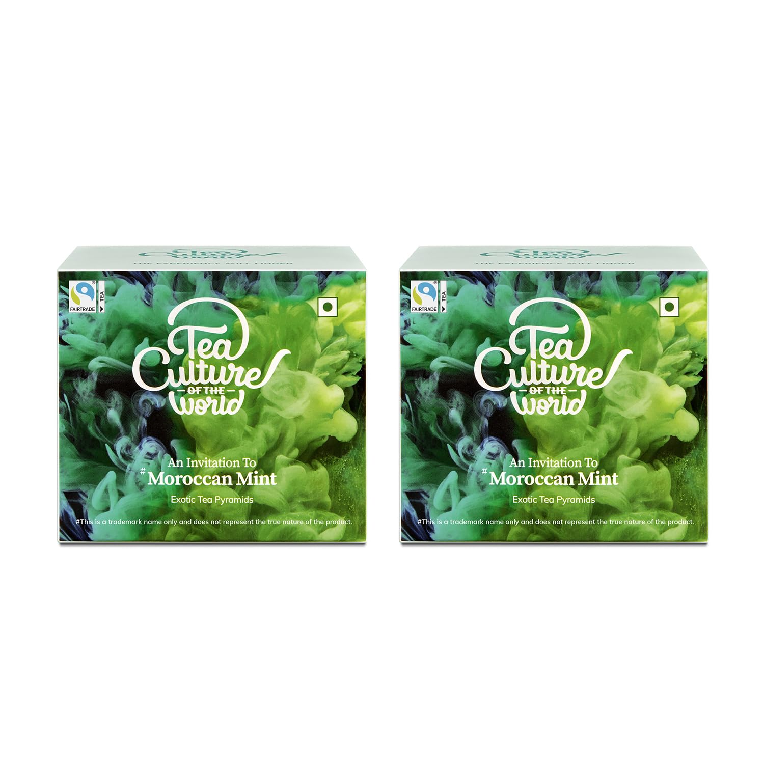 Tea Culture Of The World Moroccan Mint Green Tea - Pack Of 2 X 16 Tea Bags | Promotes Healthy Skin - Premium First Quality Green Teabags | High Caffeine
