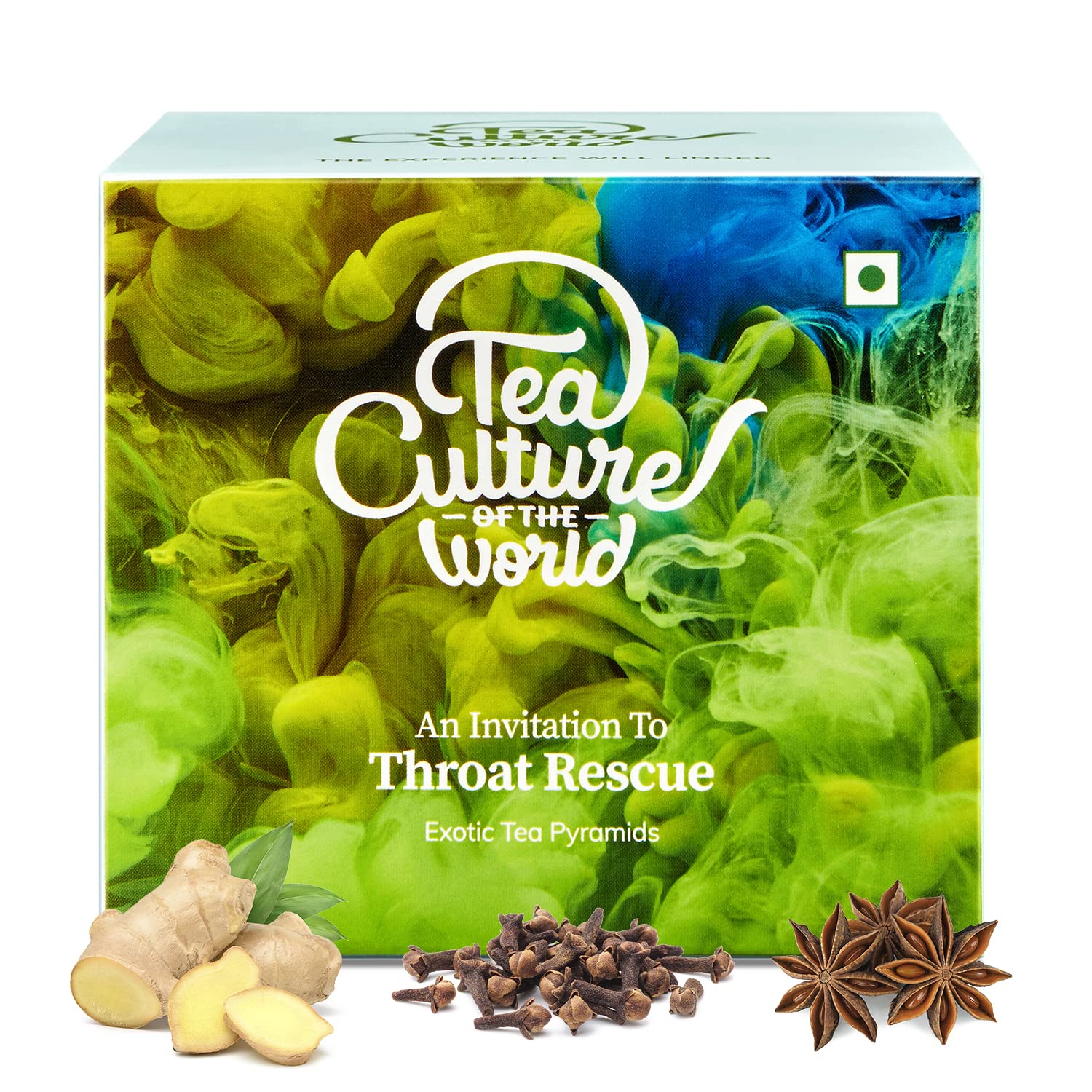 Tea Culture Of The World Throat Rescue Green Tea - 16 Tea Bags | Premium First Quality Green Teabags - Medium Caffeine