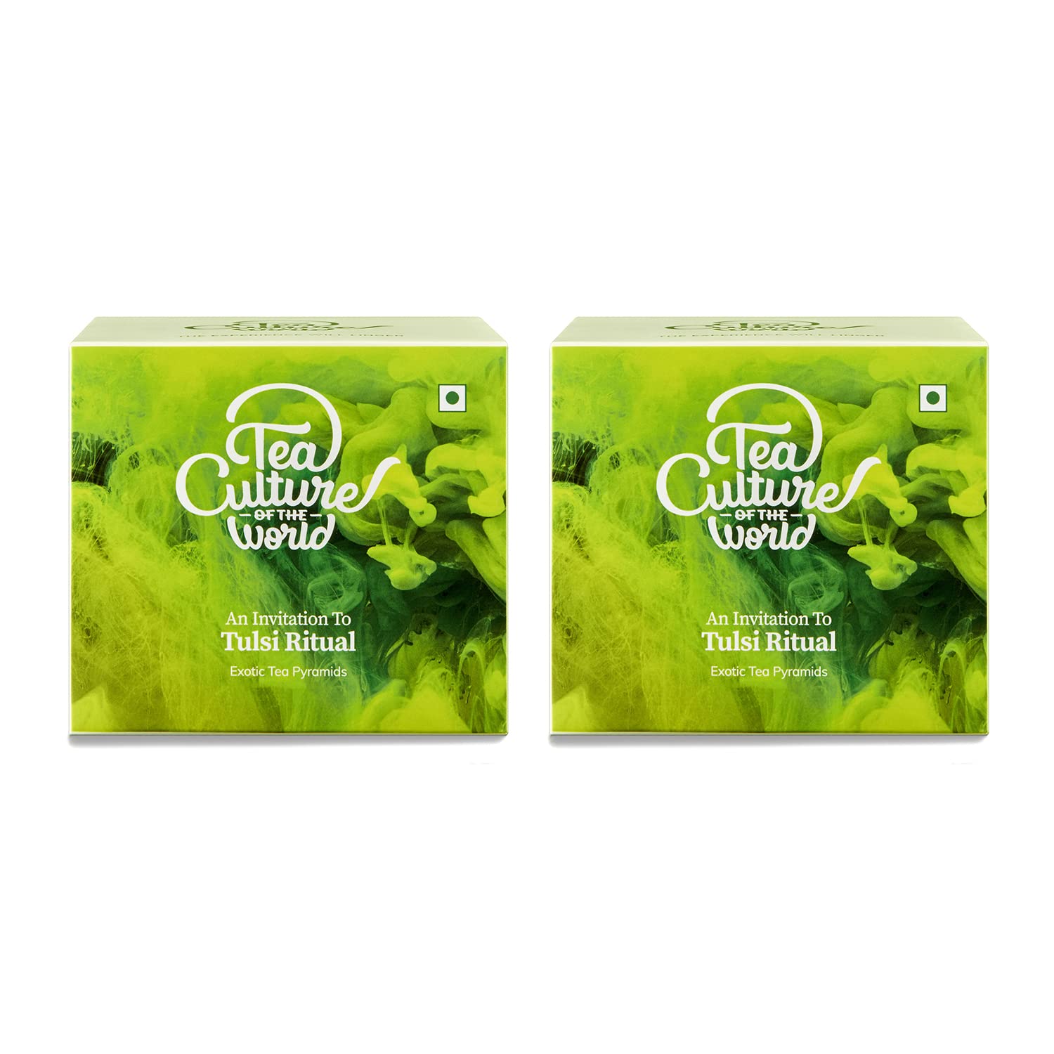 Tea Culture Of The World Tulsi Ritual Green Tea - Pack Of 2 X 16 Tea Bags | Tulsi Green Tea Gives Positive Mindset - Antioxidant Rich, Detoxification & Anti-Aging | Medium Caffeine