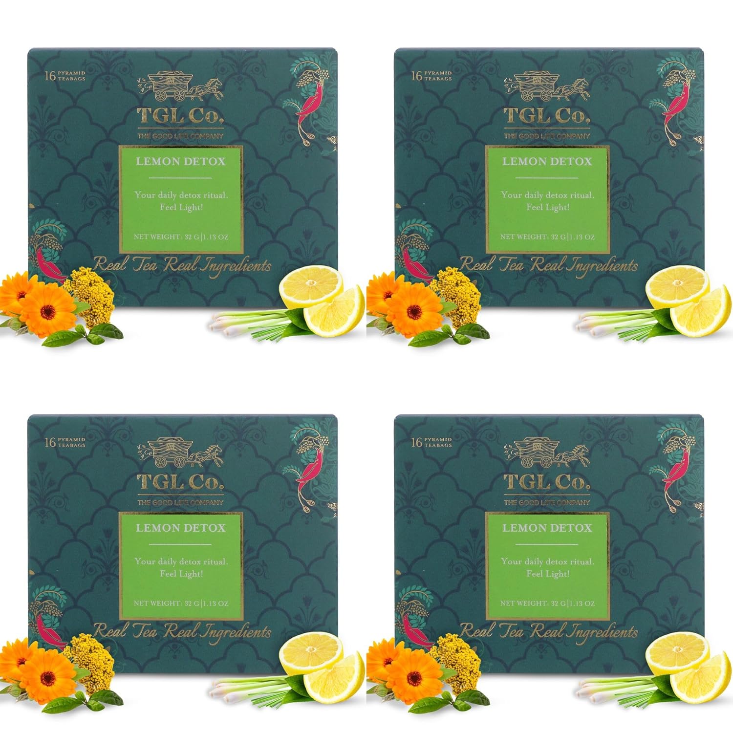 TGL Co. Lemon Detox Green Tea - Pack Of 4 X 16 Pyramid Tea Bags | Anti Inflammatory Properties, Keeps Hydrated - Medium Caffeine, Rich In Taste