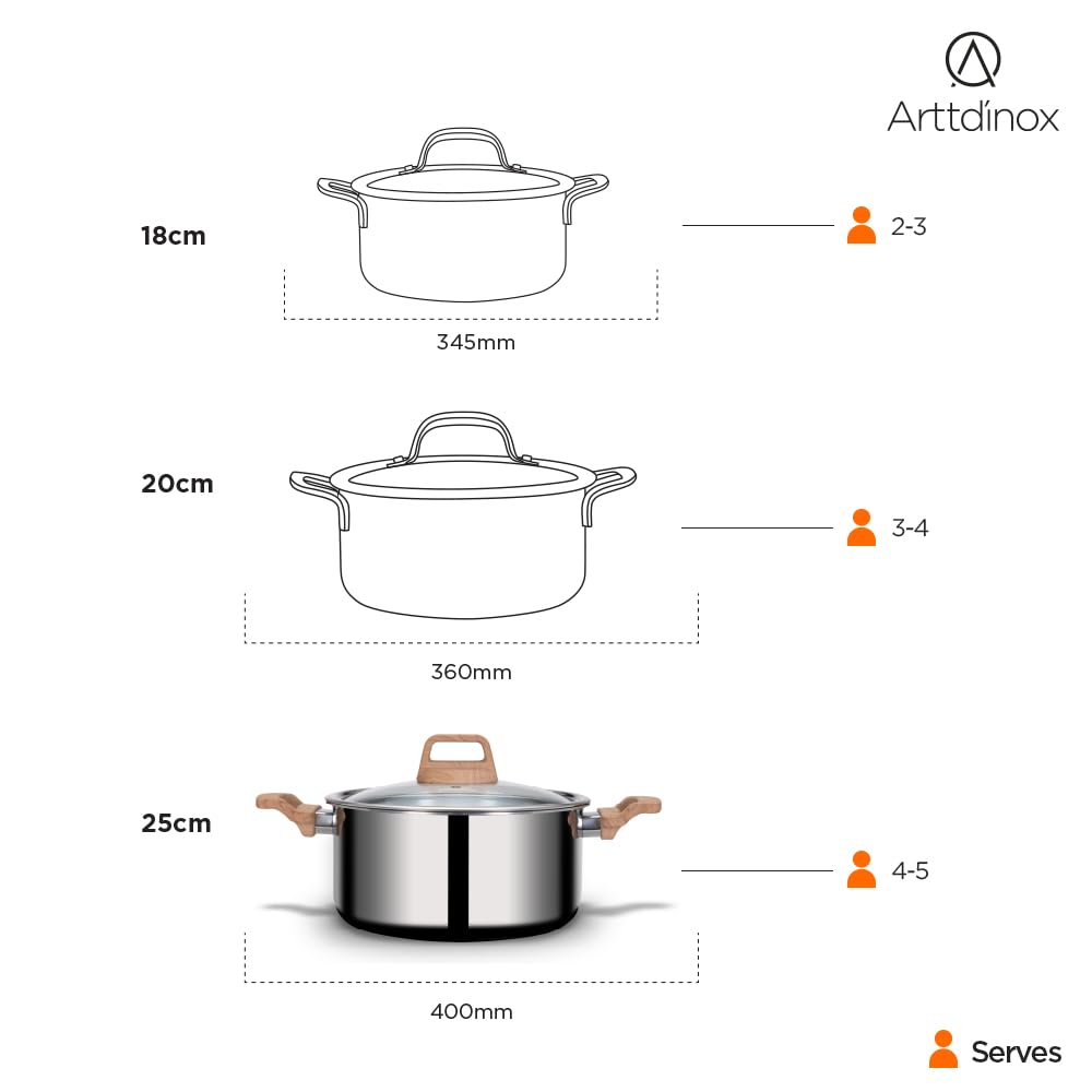 Timber Stainless Steel Triply Pot With Glass Lid 20cm, 3 Liters | For Biryani, Pulao, Halwa, Curries | Wood Finished Handle | Induction & Gas Base