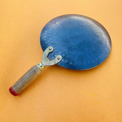 Traditional Pure Black Iron Tawa With Wooden Handle, 9 Inches - Heavy Base For Roti, Chapati With Wooden Handle Roti Tawa