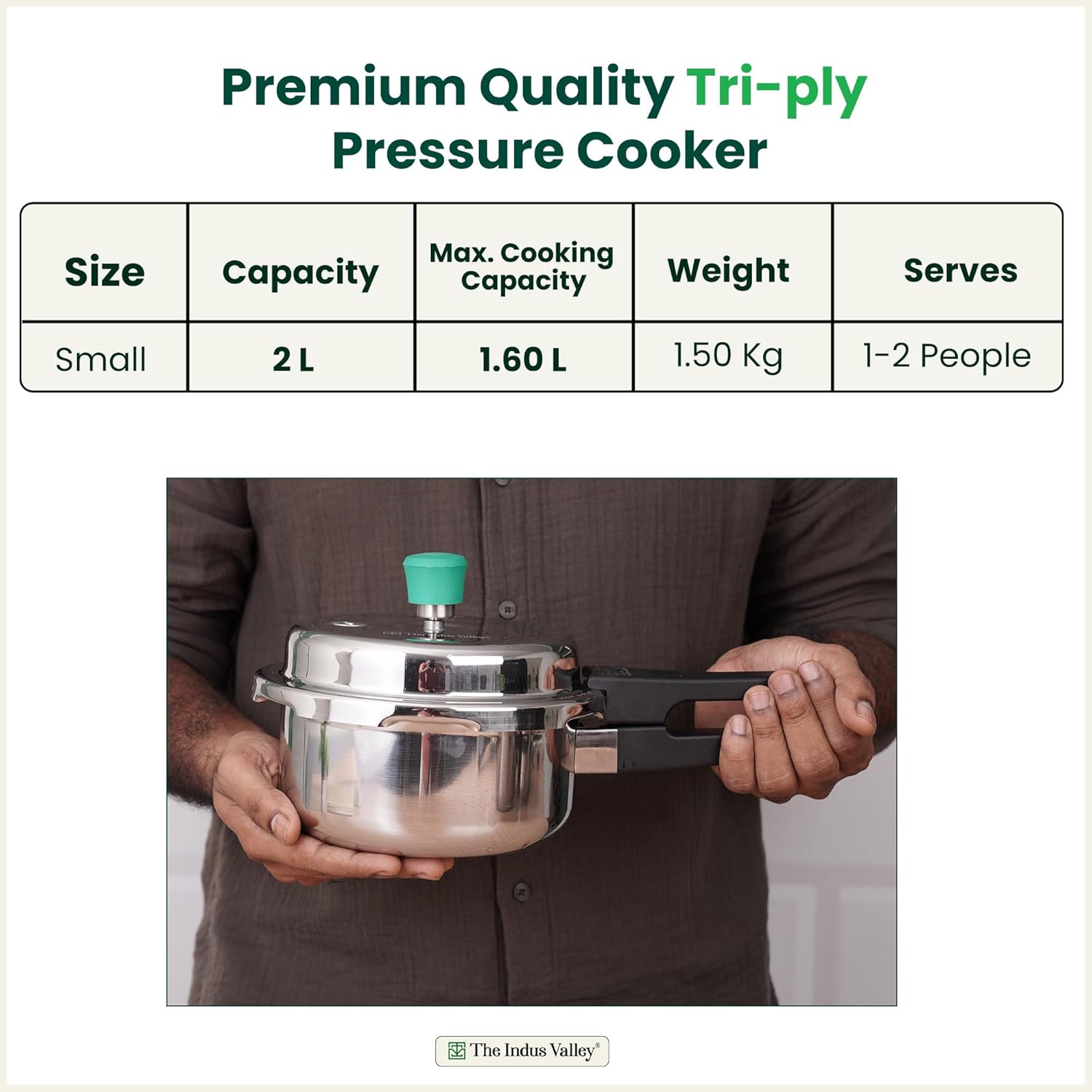 Triply Stainless Steel Pressure Cooker Outer Lid For 1-2 People | Very Small, 2 Liters, 1.5kg | Induction Friendly | Nonstick 3-layer Construction, 5 Years Warranty